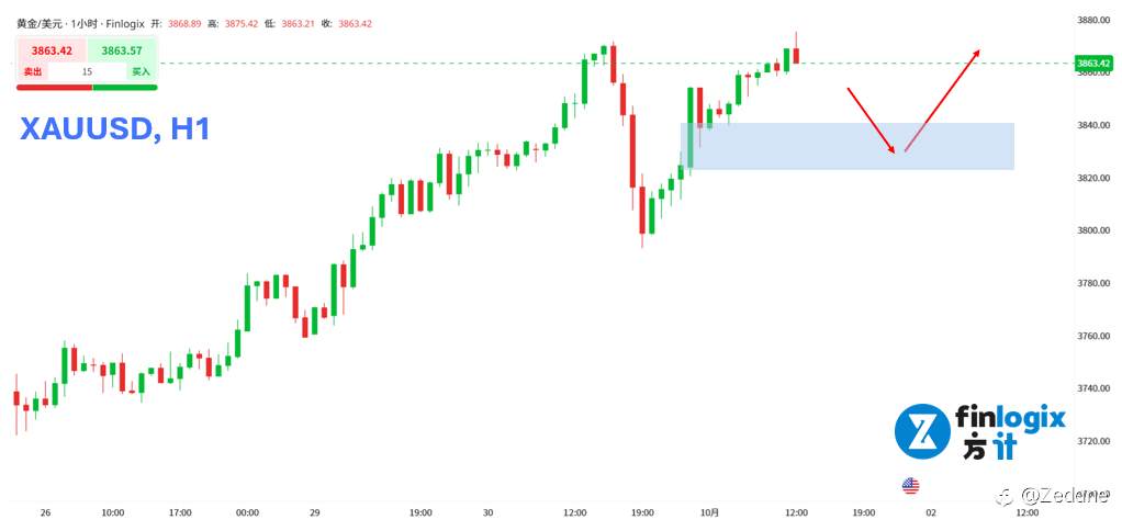 技术面:金价在亚洲时段可能出现小幅回调,但若美国政府停摆导致周五非农数据暂停公布,今晚的 ADP 小非农数据将格外关键。若结果延续劳动力市场放缓趋势,则年内降息概率将进一步升高,从而成为推动金价续涨的催化剂。操作上,若日内金价在 3825–3835 美元区间回踩企稳,可考虑做多。