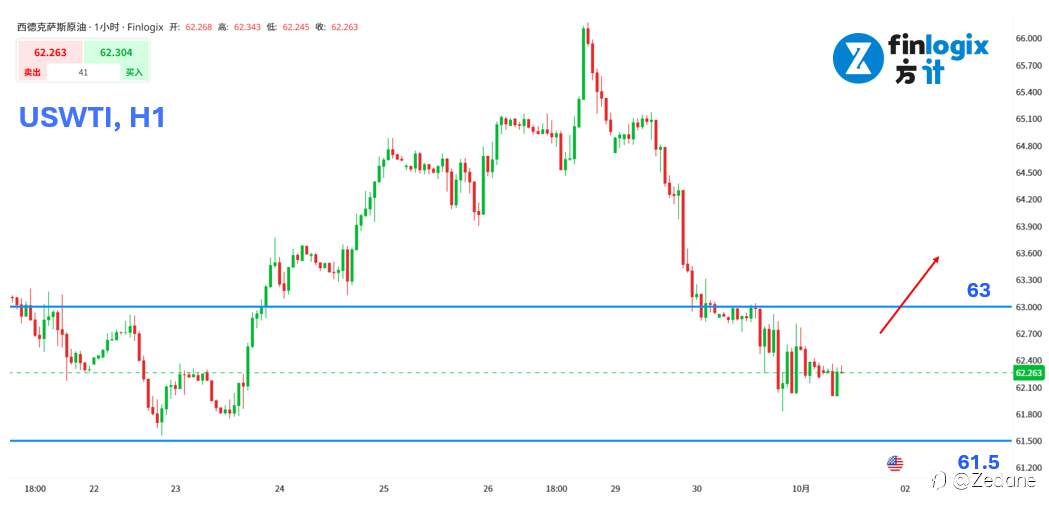 技术面:WTI在连续三天下跌后,目前来到61.5~62美元重要支撑,市场或以消化OPEC+在11月的增产计画,且地缘冲突仍替油价提供良好的下档支撑,因此日内策略以小时线站上63美元偏多交易。