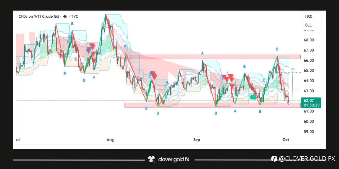 USOIL is in clear range bound structure as price has been moving between a horizontal support zone and a horizontal resistance zone for an extended period of time. After rejecting the upper boundary the market dropped back to the support area where buyers are expected to show interest once again. The repeated rejections from both levels highlight strong liquidity zones that continue to guide market direction. If the support holds price could bounce higher toward the resistance region but if it breaks lower the structure may shift into a bearish continuation. Traders will be watching closely for confirmation signals around this level before deciding the next move.