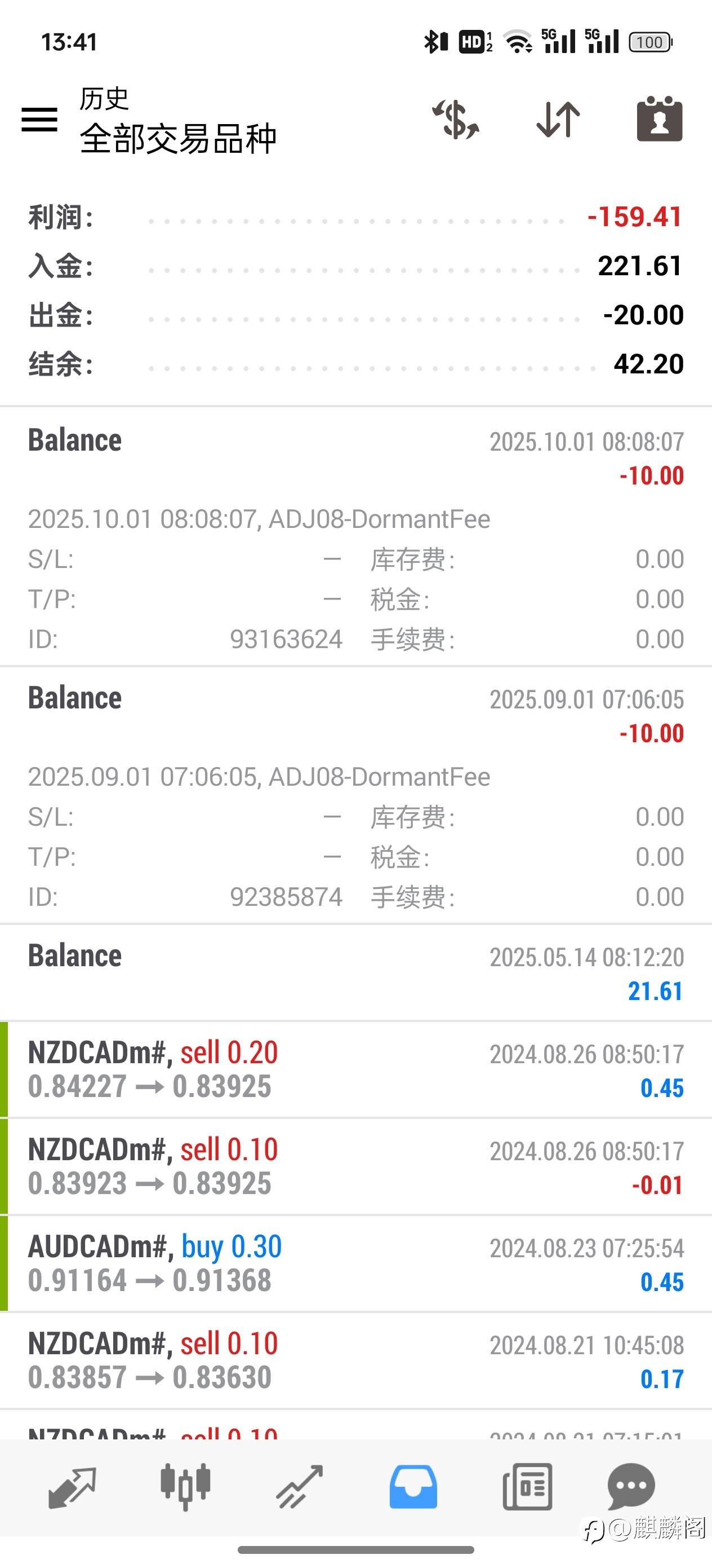 XM平台偷偷扣费账户管理费,没有邮件提醒,几十美金的账户你都舍得每个月扣10美金,是不是有点过了?#交易平台##XM# 风险提示:本文所述仅代表作者个人观点,不代表 Followme 的官方立场。Followme 不对内容的准确性、完整性或可靠性作出任何保证,对于基于该内容所采取的任何行为,不承担任何责任,除非另有书面明确说明。