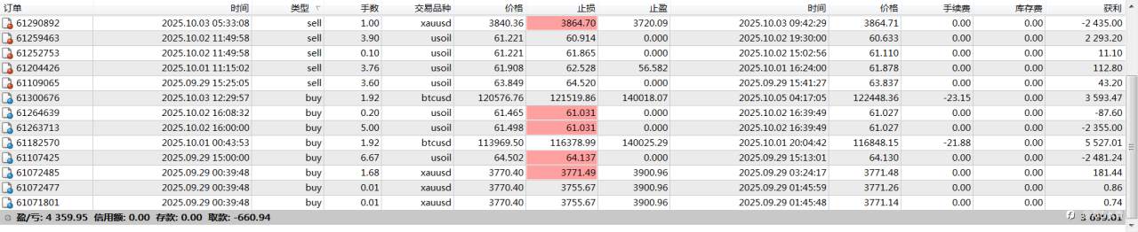 一周总结9.29---10.4,本周做单8笔,止损3笔,止盈3笔,保本2笔,共盈利4000刀,错单1,少盈利7000刀,影响我好几天的情绪。好好总结,下周再接再厉。 风险提示:本文所述仅代表作者个人观点,不代表 Followme 的官方立场。Followme 不对内容的准确性、完整性或可靠性作出任何保证,对于基于该内容所采取的任何行为,不承担任何责任,除非另有书面明确说明。