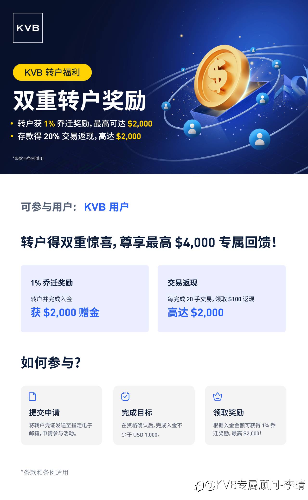 转户到 KVB,入金即可享 1% 乔迁奖励 + 交易返现,