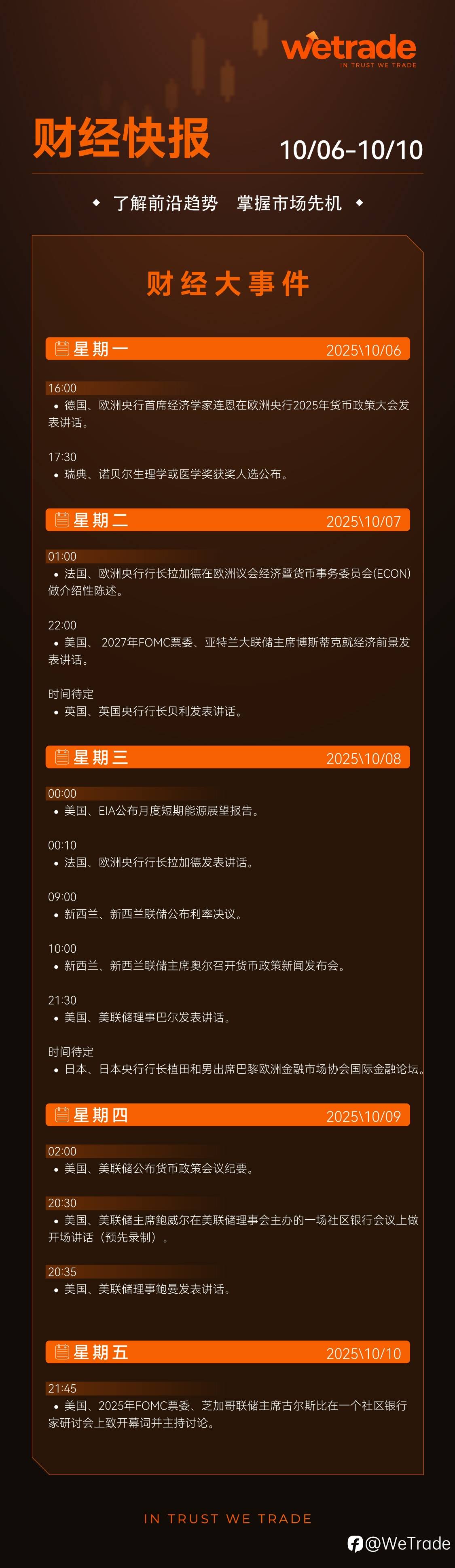 WeTrade财经快报丨十月第二周国际要闻早知道
