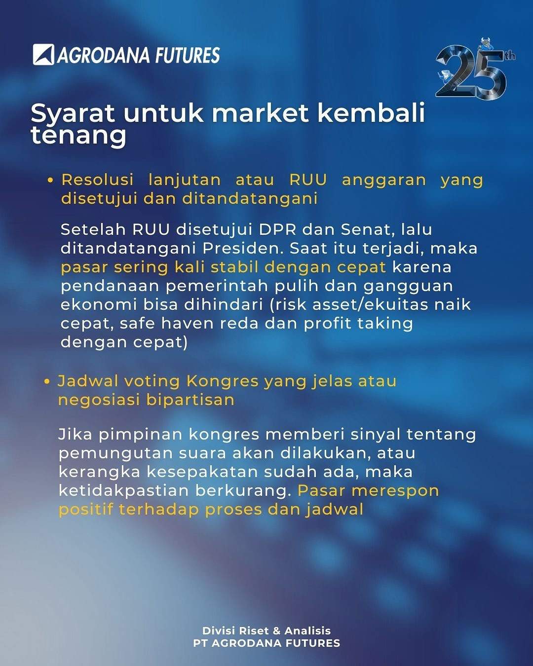 Tarik menarik kepentingan politik di AS bikin pasar global waspada. Jika gagal mencapai kesepakatan, potensi Government Shutdown bisa mengguncang pasar global!