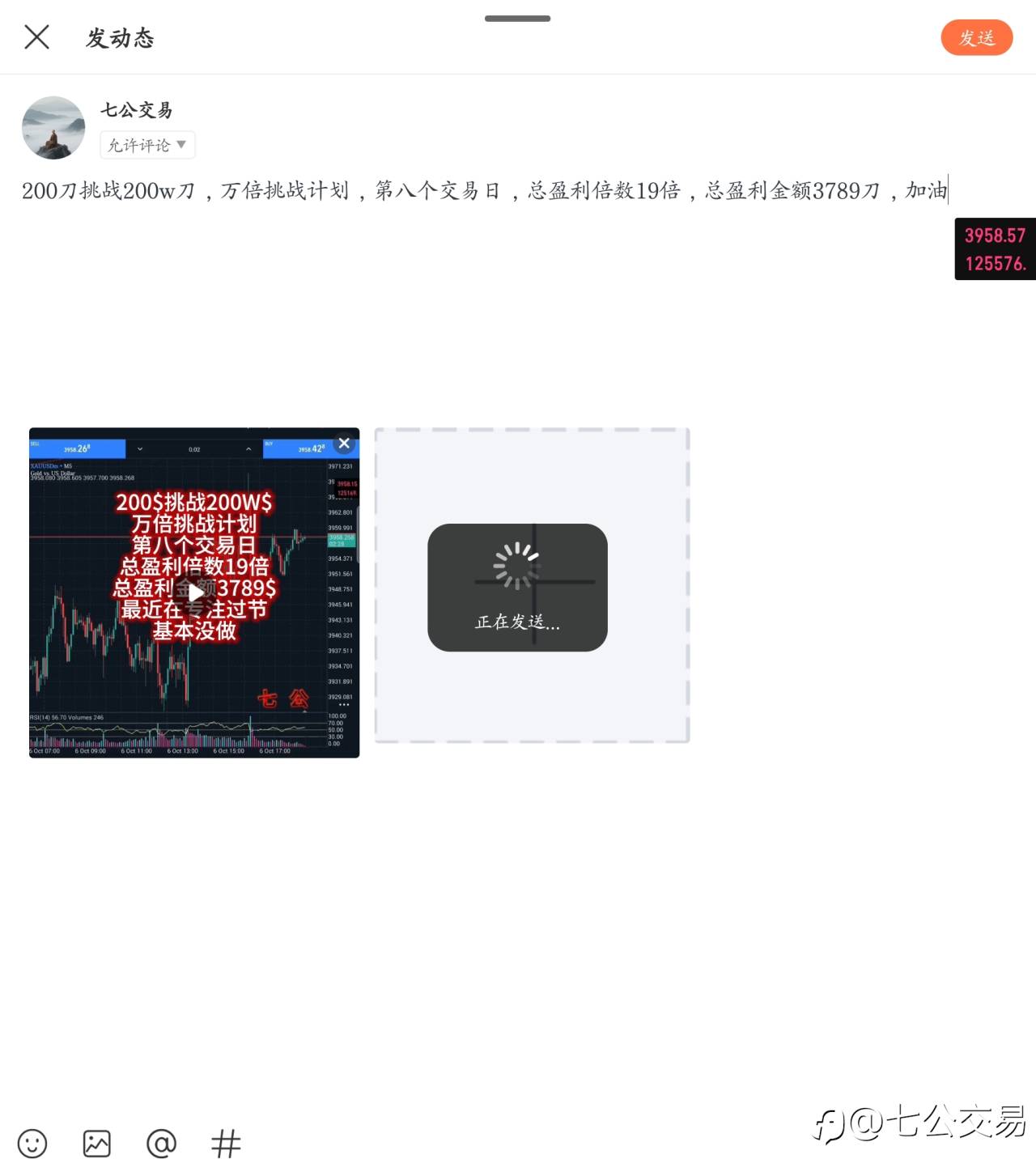 200刀挑战200w刀,万倍挑战计划,第八个交易日,总盈利倍数19倍,总盈利金额3789刀,加油 风险提示:本文所述仅代表作者个人观点,不代表 Followme 的官方立场。Followme 不对内容的准确性、完整性或可靠性作出任何保证,对于基于该内容所采取的任何行为,不承担任何责任,除非另有书面明确说明。