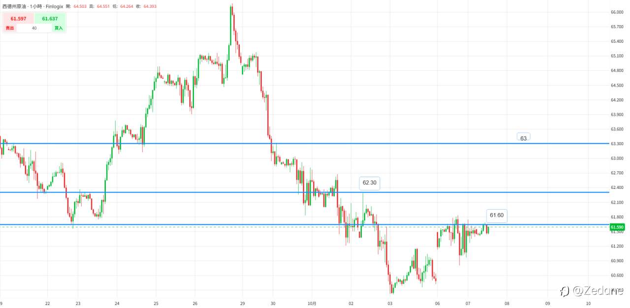 100均线向下,多单需要设好止损。现价在61.6下方形成震荡区域,考虑到周一的跳空动能,交易策略可以等待突破后跟随做多。目标位置看前高点或斐波那契回调线。