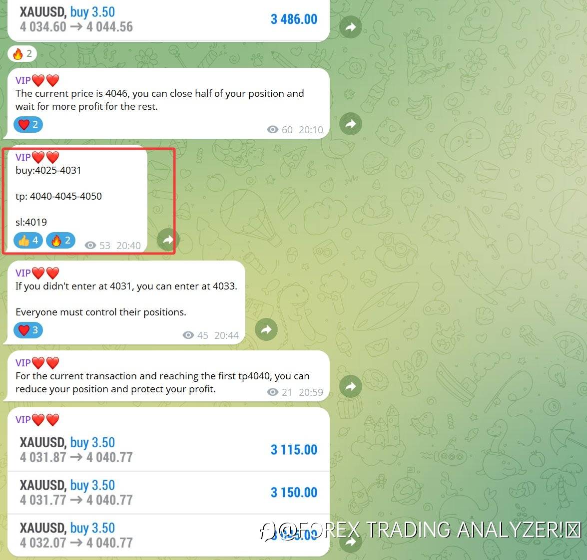 The VIP channel sent four signals today, with a total profit of over 500 pips.