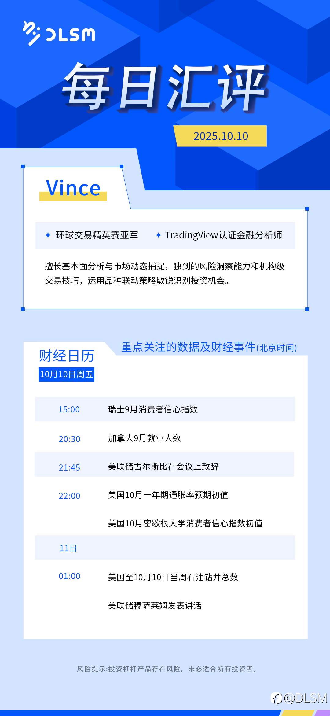 🔥DLSM·25年10月10日·每日汇评 风险提示:本文所述仅代表作者个人观点,不代表 Followme 的官方立场。Followme 不对内容的准确性、完整性或可靠性作出任何保证,对于基于该内容所采取的任何行为,不承担任何责任,除非另有书面明确说明。