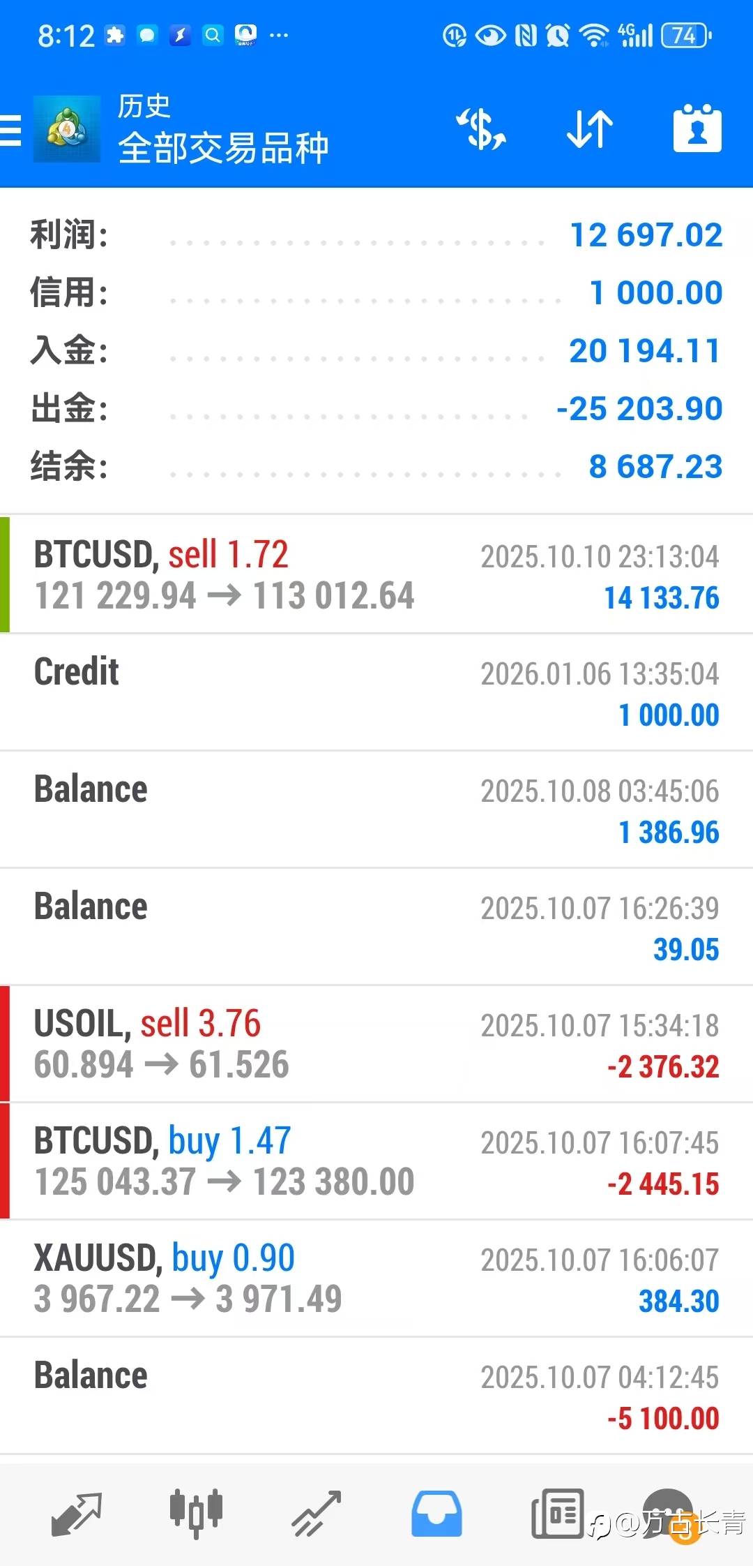 一周总结10.05-10.11,这周下单8笔,损3笔,盈利全是小盈利,全靠周五比特币单骑救主,让一周的浊气全部吐出,舒服。一周盈利1.2W刀。 风险提示:本文所述仅代表作者个人观点,不代表 Followme 的官方立场。Followme 不对内容的准确性、完整性或可靠性作出任何保证,对于基于该内容所采取的任何行为,不承担任何责任,除非另有书面明确说明。