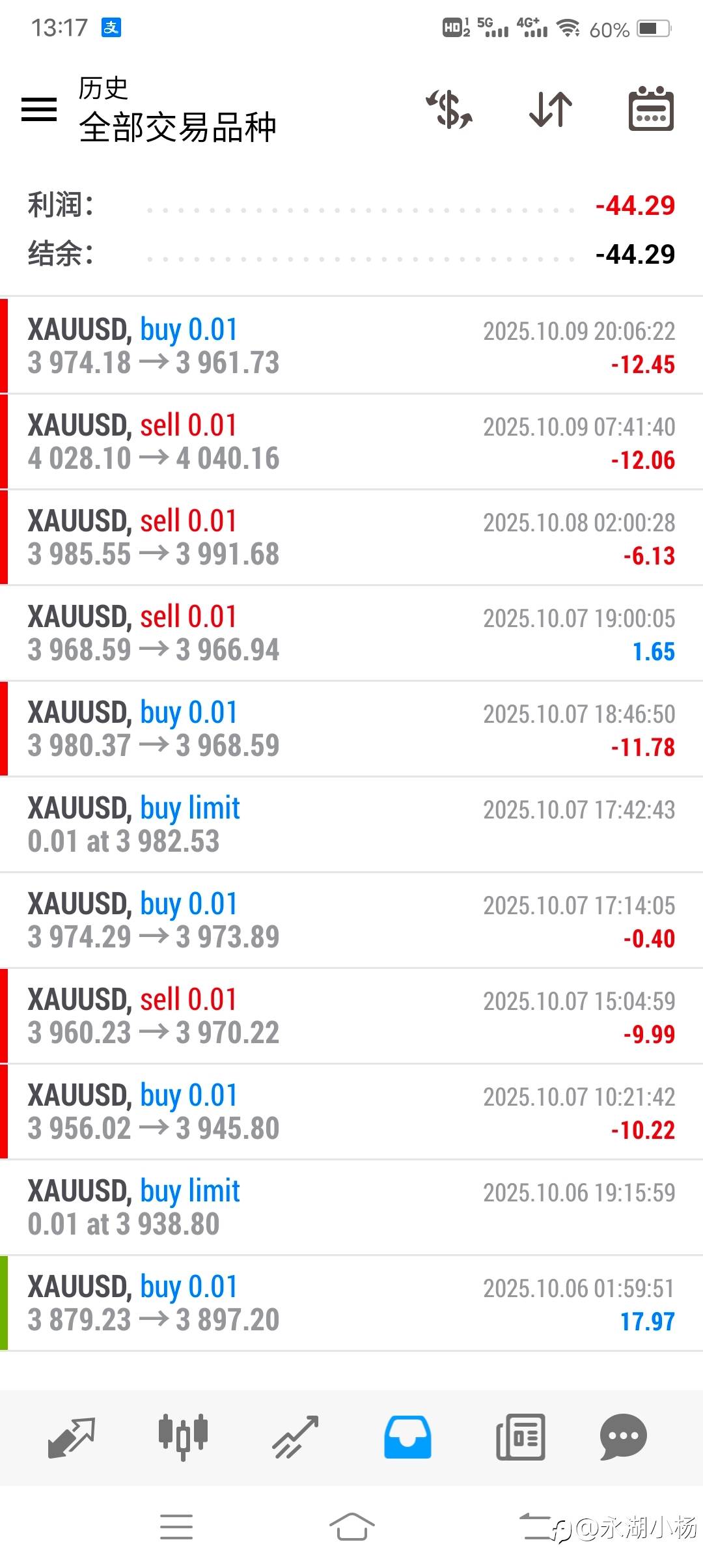 【25年第41周】这周亏成狗,下周晚上不钓鱼了,好好做交易!😂😂😂#每日交易打卡##XAU/USD# 风险提示:本文所述仅代表作者个人观点,不代表 Followme 的官方立场。Followme 不对内容的准确性、完整性或可靠性作出任何保证,对于基于该内容所采取的任何行为,不承担任何责任,除非另有书面明确说明。