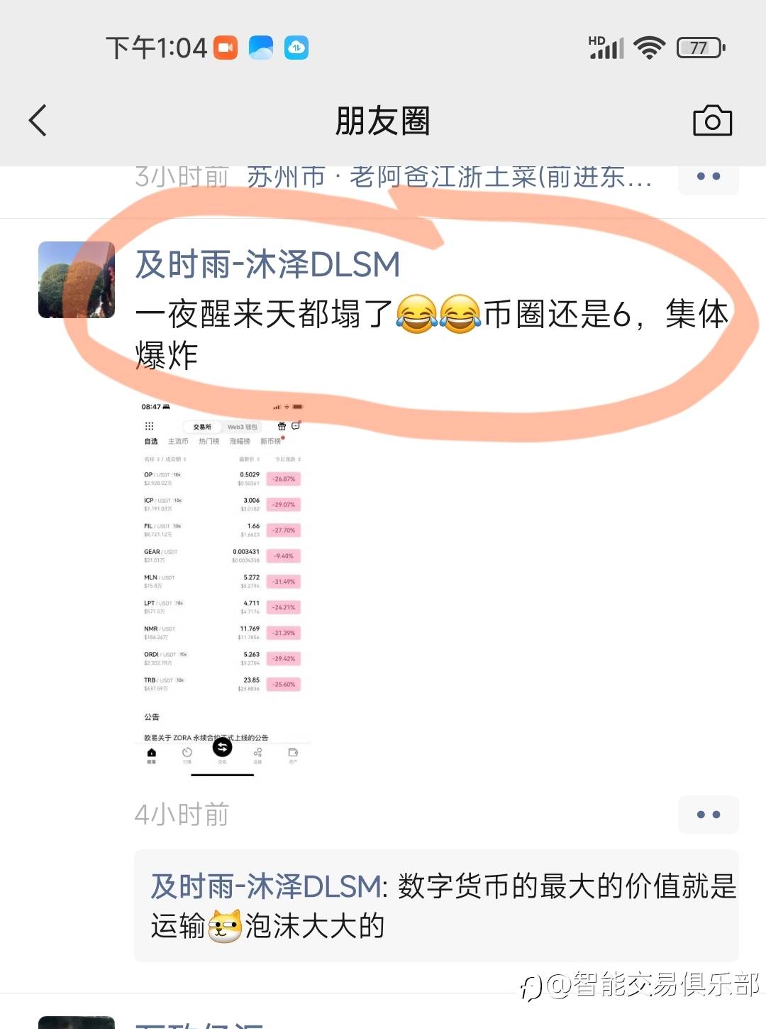 许多人连股票都炒不好,还在炒数字货币。可笑 风险提示:本文所述仅代表作者个人观点,不代表 Followme 的官方立场。Followme 不对内容的准确性、完整性或可靠性作出任何保证,对于基于该内容所采取的任何行为,不承担任何责任,除非另有书面明确说明。