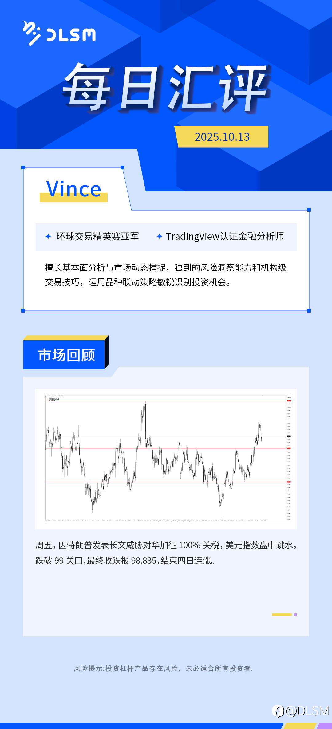 🔥DLSM·25年10月13日·每日汇评 风险提示:本文所述仅代表作者个人观点,不代表 Followme 的官方立场。Followme 不对内容的准确性、完整性或可靠性作出任何保证,对于基于该内容所采取的任何行为,不承担任何责任,除非另有书面明确说明。
