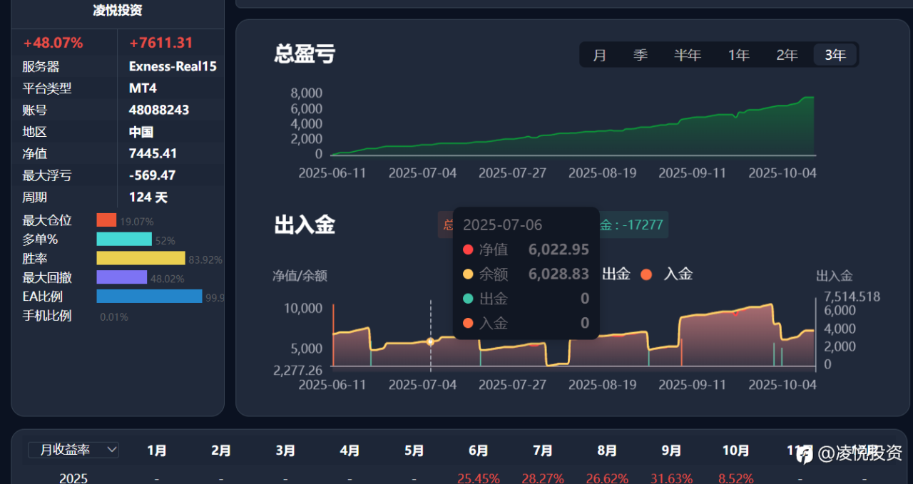 绿盈智能交易,专注黄金,上周收盈1115,10月9日黄金瀑布式下跌113美金之多,很多考查观摩的朋友们说到浮亏偏大,因共享观摩帐号点差为160,合作客户的是先峰帐号112,所以两者浮亏有很大区别,先峰帐号的浮亏昨天基本上在1000以内,做单最大手数在0.25手,智能交易系统在高频开仓平仓的情况下,使用低点差帐户很重要。以下是两种帐户的观摩,可参考!