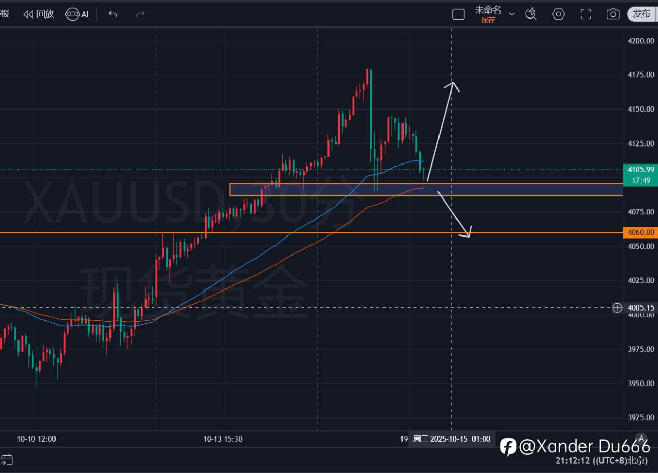 4095~4100之上多,目标4155 跌破4088空,目标4060 *仅代表个人观点#XAU/USD#