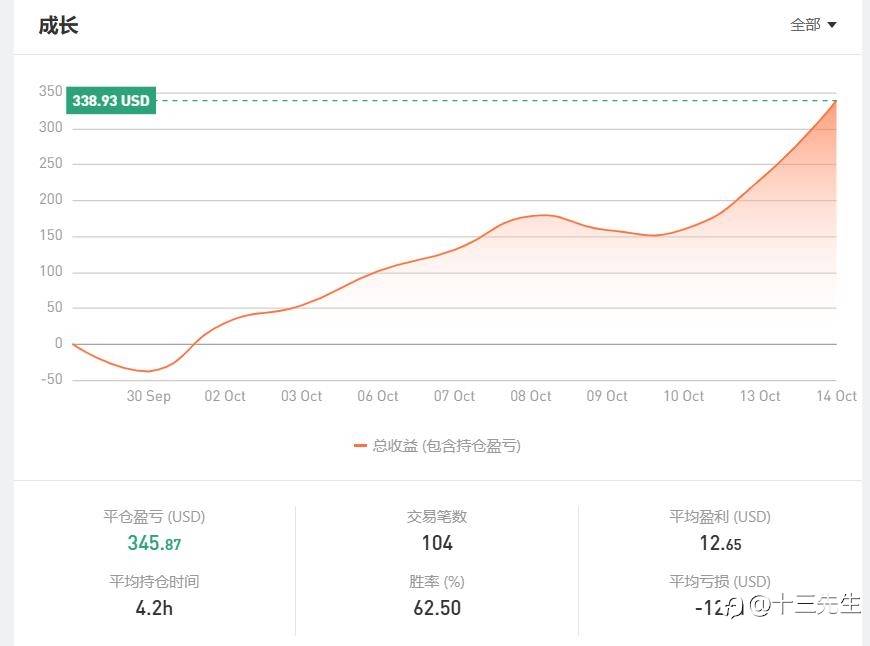大家好,我是十三先生。截止今天两个礼拜的时间我们100美金的账户翻