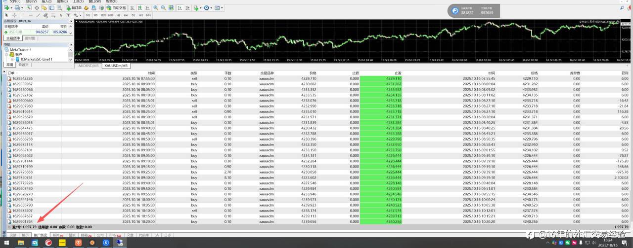 2025年10月16日召集分享1991美金收入囊中,需要跟单的可以免费跟单。 风险提示:本文所述仅代表作者个人观点,不代表 Followme 的官方立场。Followme 不对内容的准确性、完整性或可靠性作出任何保证,对于基于该内容所采取的任何行为,不承担任何责任,除非另有书面明确说明。
