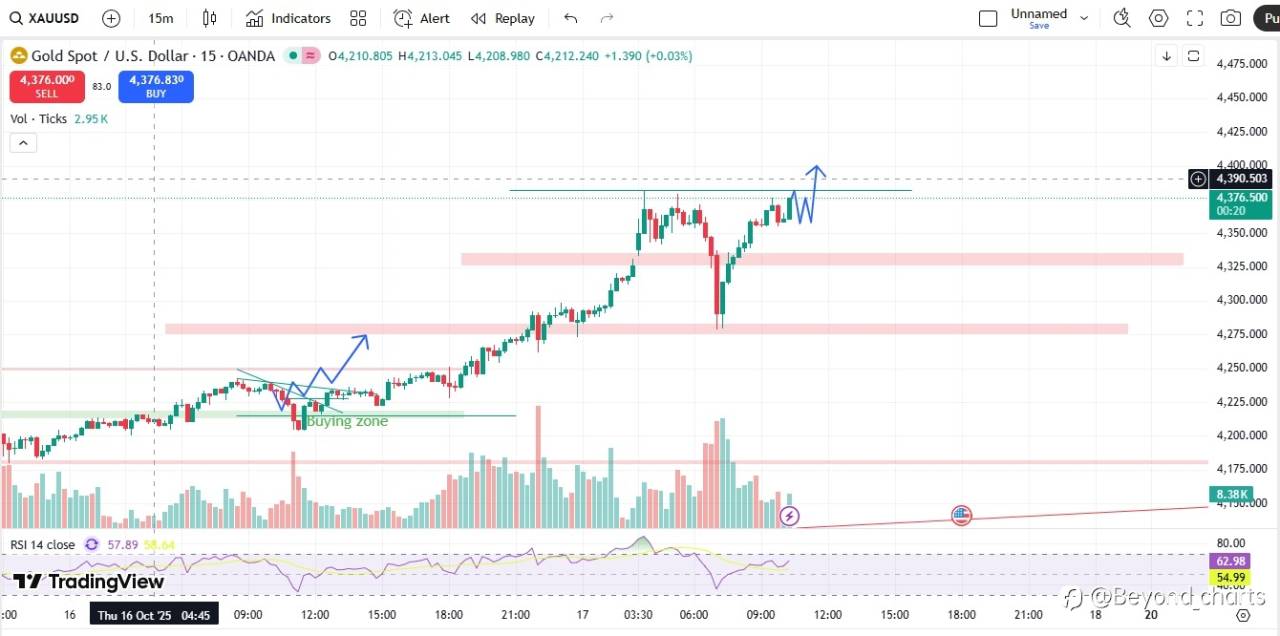Gold continues its remarkable bullish momentum, showing no signs of slowing down. The metal is maintaining strong support around 4350–4330, while resistance is now seen near 4380–4400.
