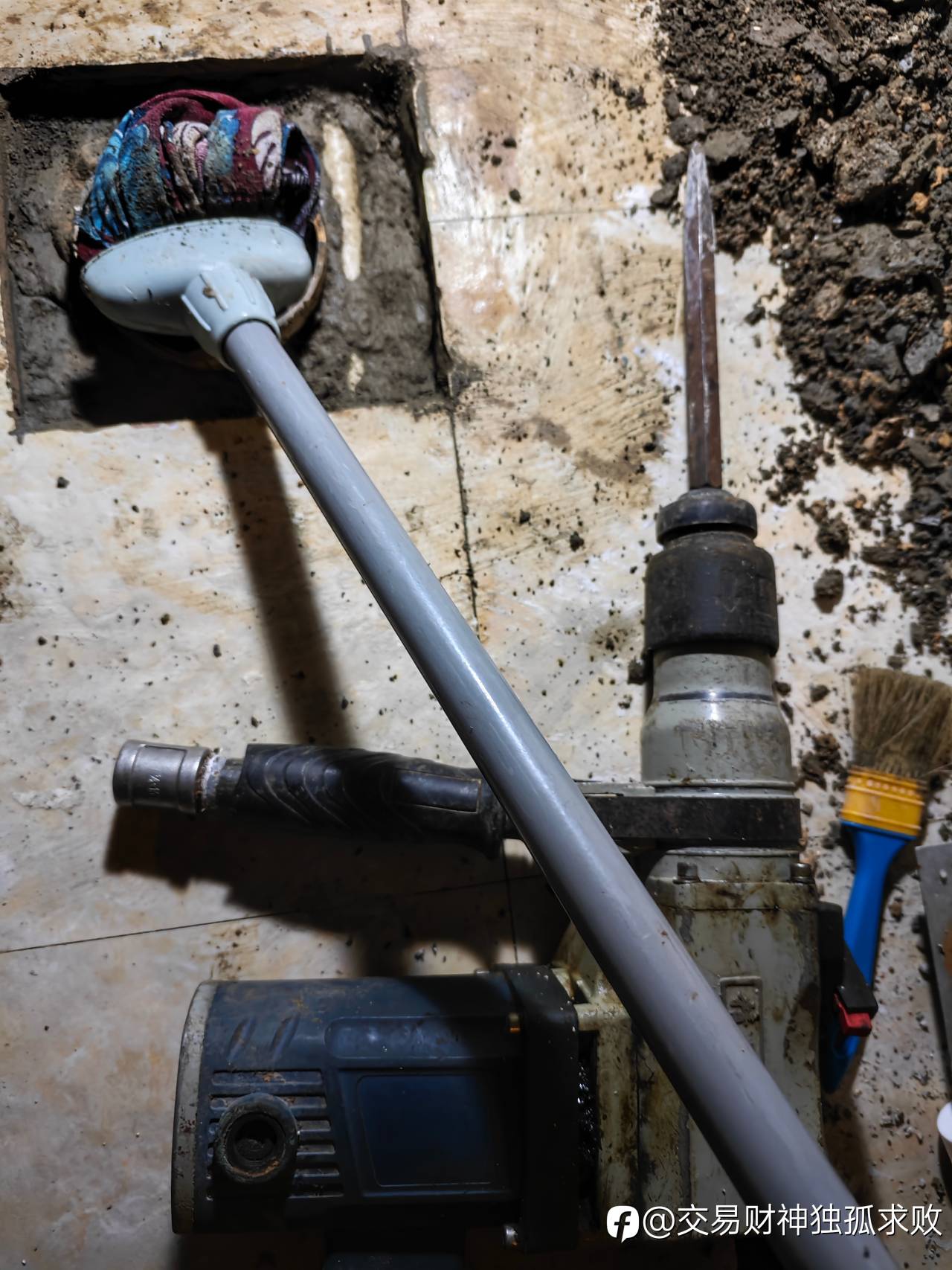 维修马桶下水管处渗水到楼下住户记录之一。用电锤拆开马桶下水管旁的混凝土层,拆时电锤缓慢往下拆,防止打穿水管。 风险提示:本文所述仅代表作者个人观点,不代表 Followme 的官方立场。Followme 不对内容的准确性、完整性或可靠性作出任何保证,对于基于该内容所采取的任何行为,不承担任何责任,除非另有书面明确说明。