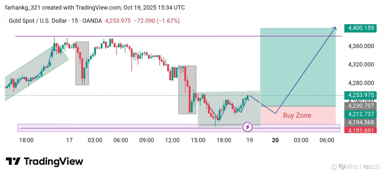 Gold (XAUUSD) is recovering after a correction from 4253, showing strong demand near the 4200 support zone. A breakout above 4260 could trigger fresh bullish momentum toward the 4400 target area.