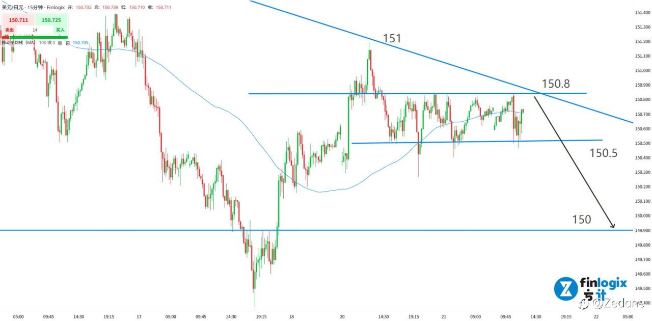 日内交易策略:(均值回归)突破150.5后跟空,或150.8-151小止损布局空单