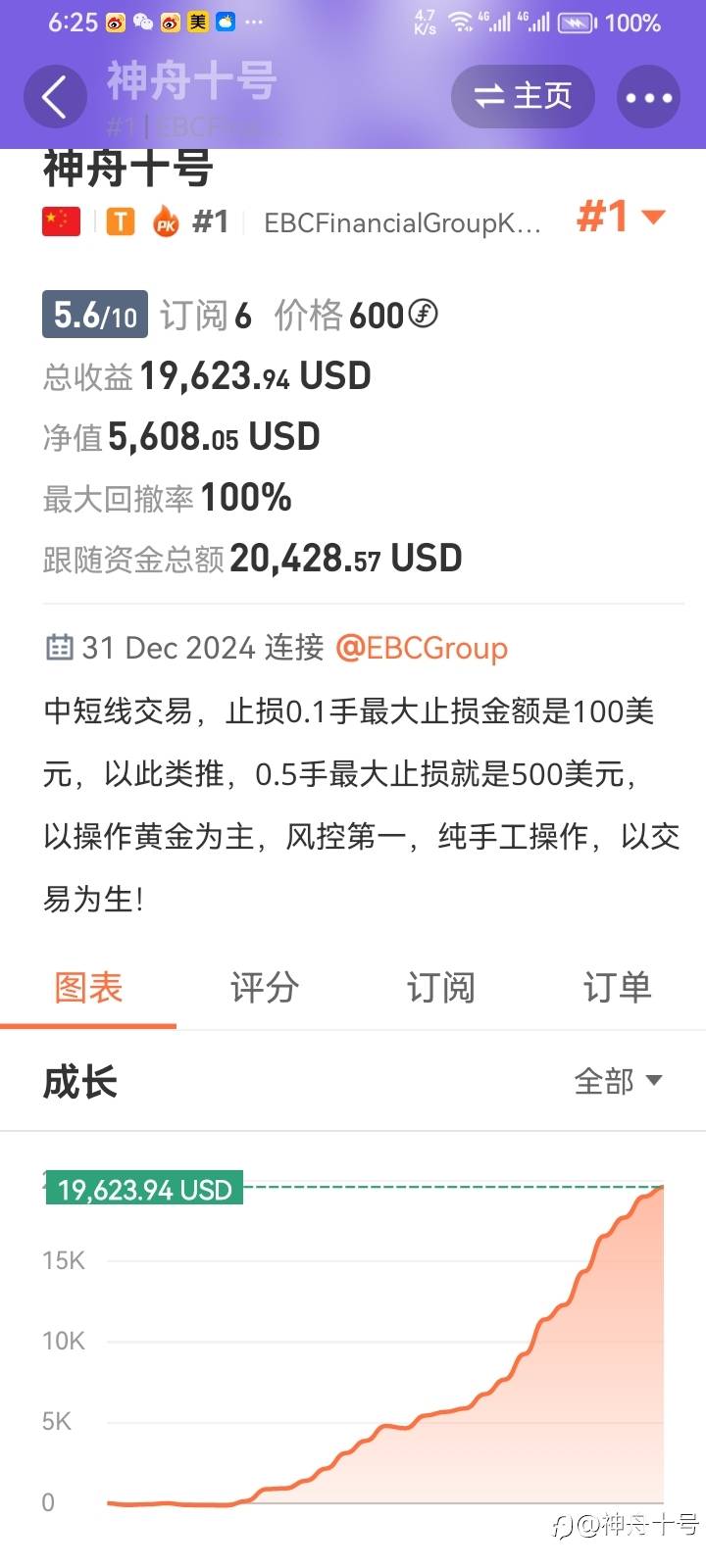 跟单说明:因为0.1手止损100美元不适合目前的行情,设10个点止损行情就是奔止损去的,止损会稍微加大,方向没错,避免毛刺单子被扫出去,会稍微容忍止损大点,(不是抗亏损单,不是让亏损单导致大亏损,单纯一天波幅100美元以上设置10点止损不合适)另外因为我是全程用手机交易,一个一个设置止盈止损的确时间来不及,虽然没设,但绝不会容忍账户大回撤,风控永远第一位,新手止损要一单一单设,老手被市场教训多了早已经风声鹤唳,无形止损是追求效率,交易十年,绝对对各位跟单负责,把你们的账户看的和自己一样,我的交易是靠盘感➕技巧,而不是分析,本来因为我是手机交易不好分析自己单子,挂平台主要分析自己单子数据,但有人跟单,我还是会尽心尽力!合作共赢!
