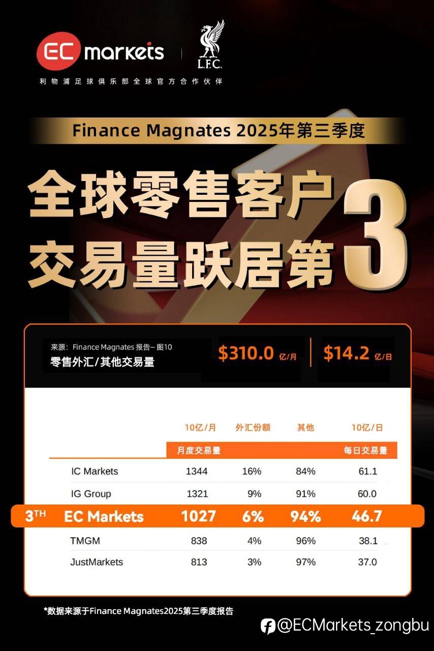 【创纪录海报分享】全球零售客户交易量第三!!! 单日净入金破纪录!EC Markets 全球顶尖交易平台之选! 卓越佳绩,源自信任。EC Markets单日净入金再度刷新纪录,这不仅是市场的认可,更是我们实力与信誉的证明。我们以卓越的交易环境与严格的合规要求,赢得全球投资者信赖。 风险提示:本文所述仅代表作者个人观点,不代表 Followme 的官方立场。Followme 不对内容的准确性、完整性或可靠性作出任何保证,对于基于该内容所采取的任何行为,不承担任何责任,除非另有书面明确说明。