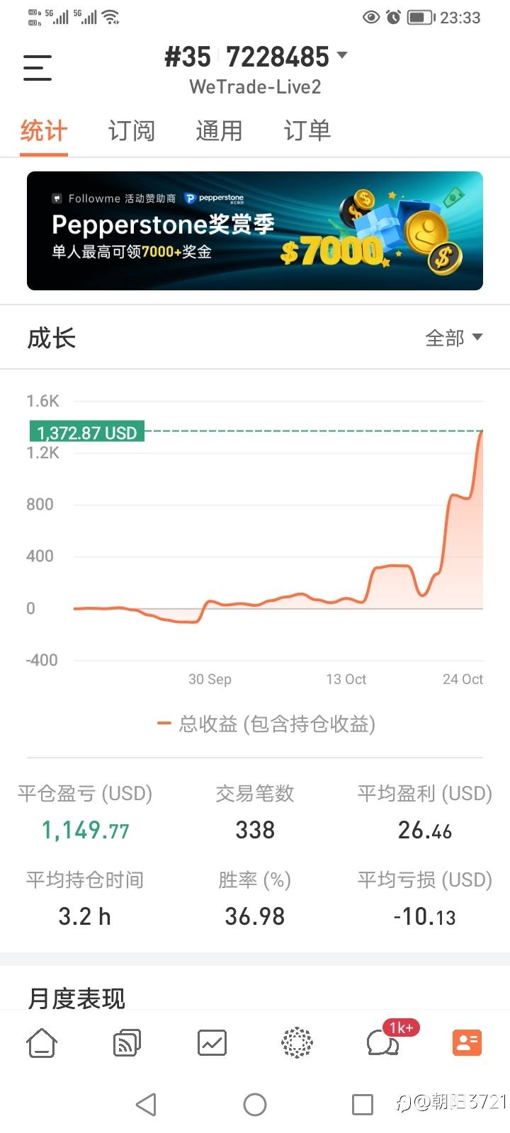 多谢黑嘉嘉带我盈利#WeTrade众汇##如何定义优秀交易账户# 风险提示:本文所述仅代表作者个人观点,不代表 Followme 的官方立场。Followme 不对内容的准确性、完整性或可靠性作出任何保证,对于基于该内容所采取的任何行为,不承担任何责任,除非另有书面明确说明。