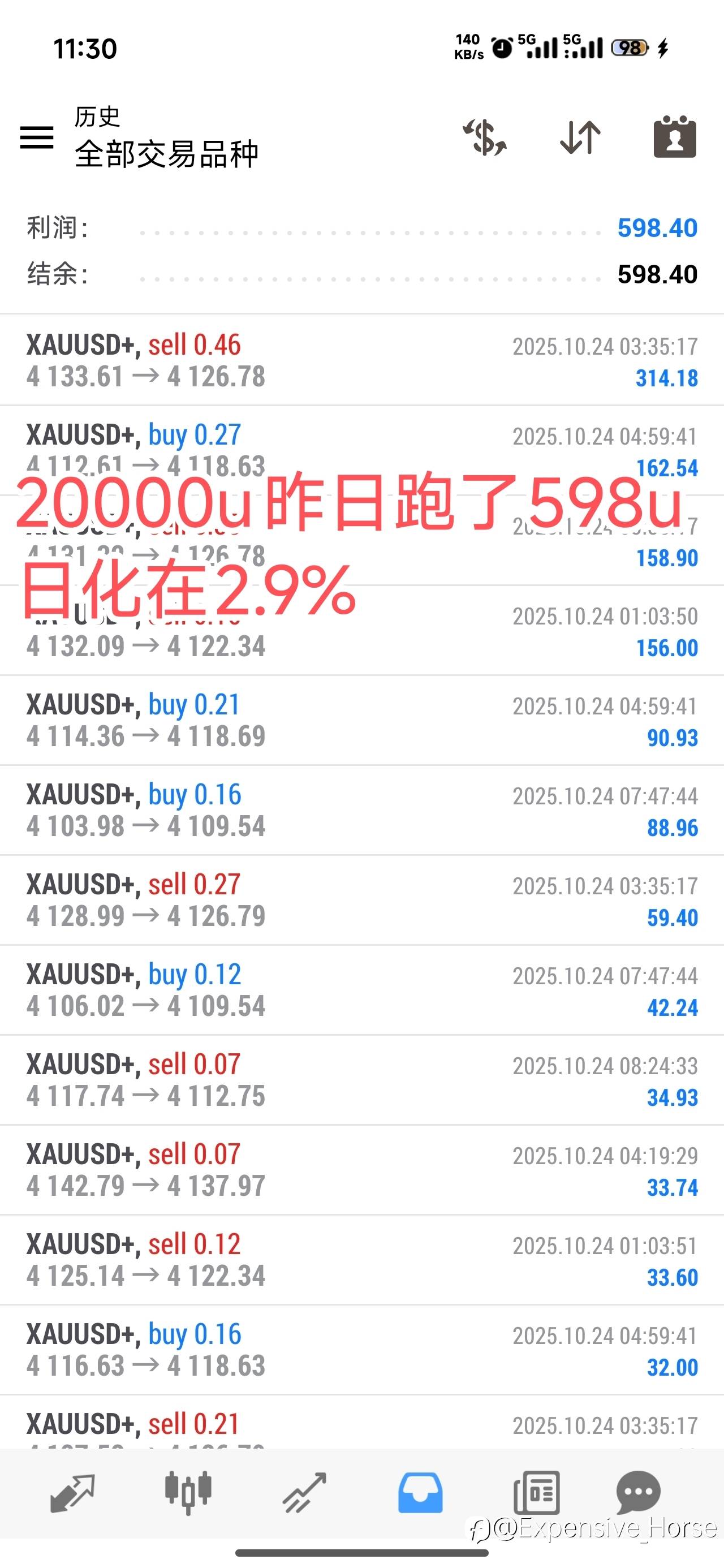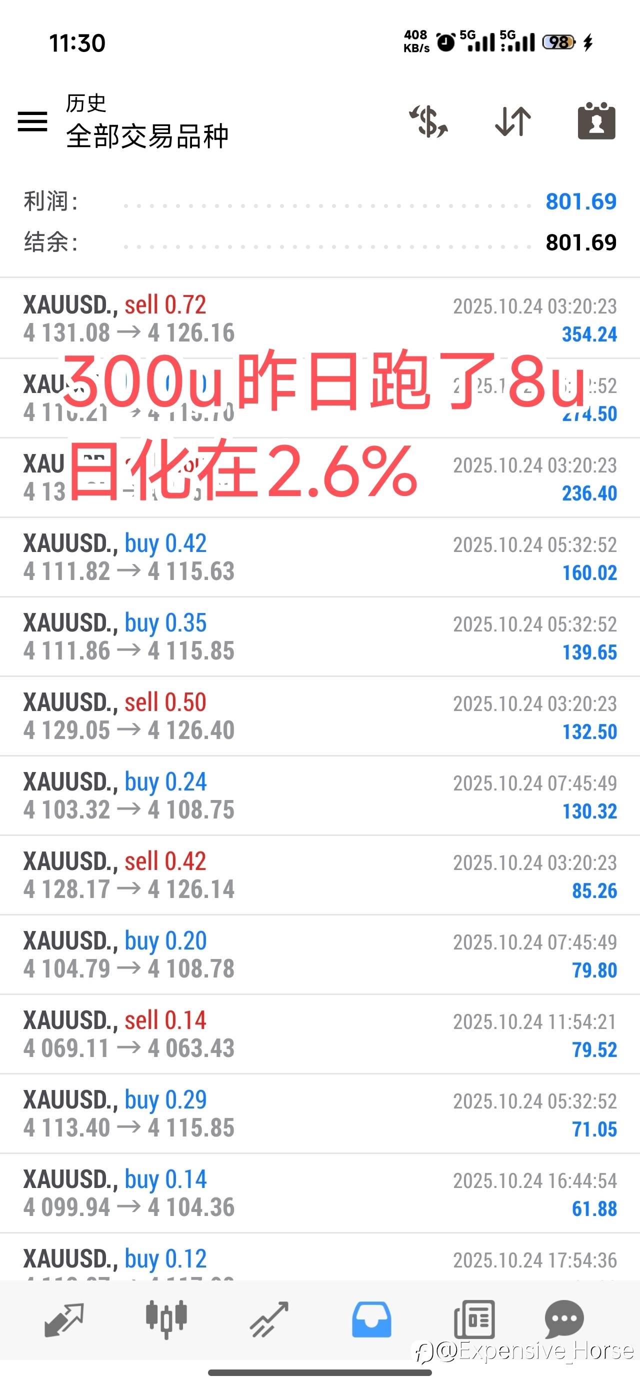 10.24号战绩分享, 20000u昨日跑了598u,日化在2.9% 300u昨日跑了8u,日化在2.6% 周末到了祝大家周末愉快 风险提示:本文所述仅代表作者个人观点,不代表 Followme 的官方立场。Followme 不对内容的准确性、完整性或可靠性作出任何保证,对于基于该内容所采取的任何行为,不承担任何责任,除非另有书面明确说明。