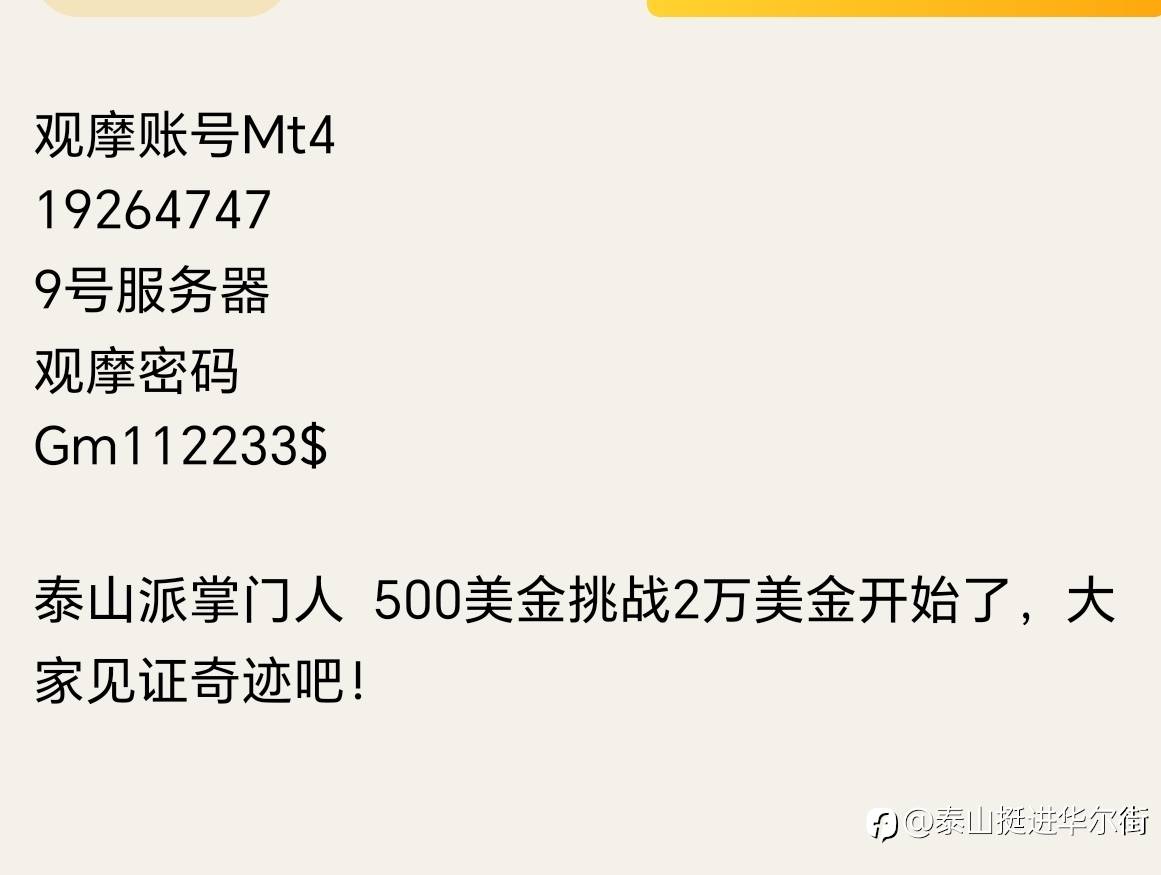 本人的观摩账号,也是挂在这里的6号,500刀挑战2万美金,开始了!😍 已编辑 26 Oct 2025, 20:25 风险提示:本文所述仅代表作者个人观点,不代表 Followme 的官方立场。Followme 不对内容的准确性、完整性或可靠性作出任何保证,对于基于该内容所采取的任何行为,不承担任何责任,除非另有书面明确说明。