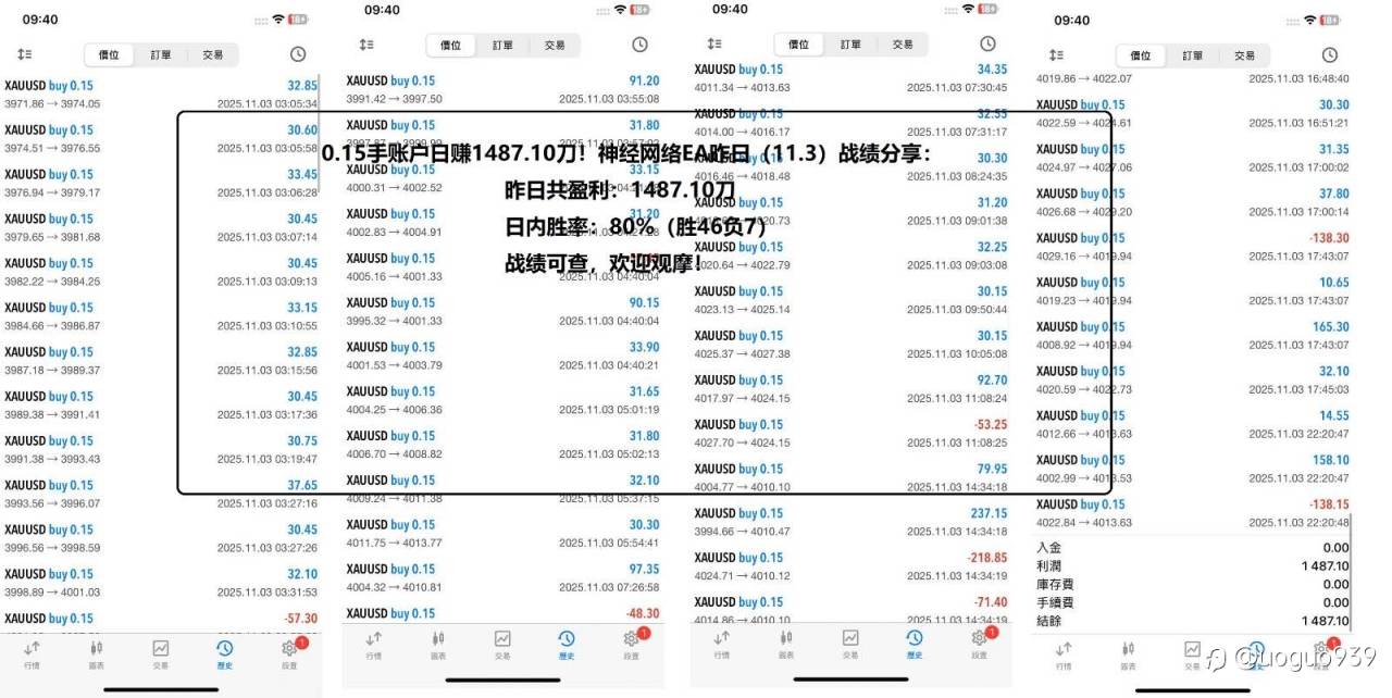 高胜率与盈利能力的双重验证:神经网络EA10月24号斩获$149(0.03手),胜率77.3%,利润因子1.94,稳健收割!
