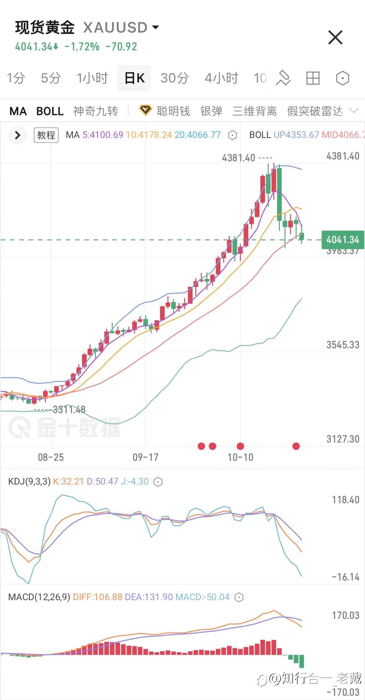 #XAU/USD# 目前黄金试探日线MA20支撑,又破位迹象;多单反弹到4085全部离场,随后4088做一个轻仓空,等待收盘