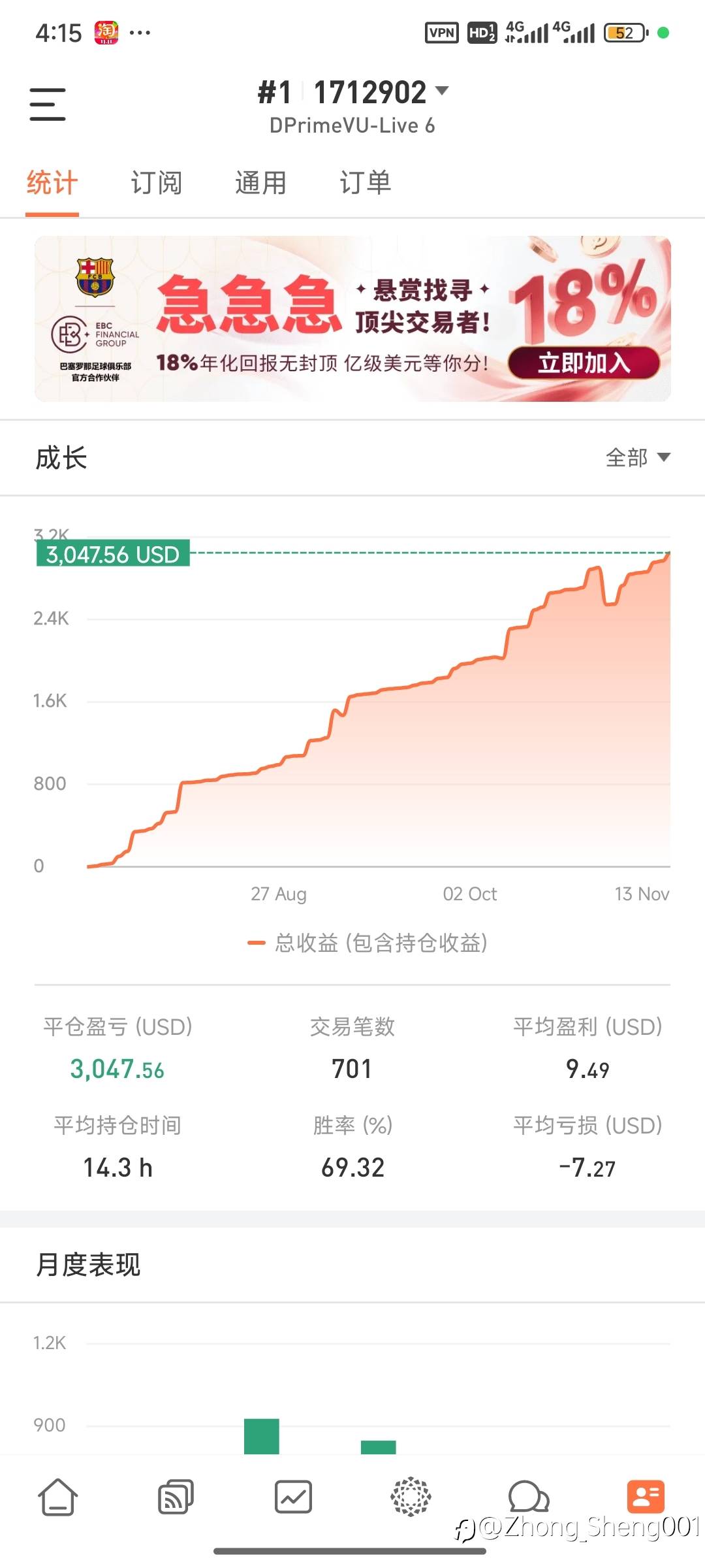 今日的EA单,盈利16.97 风险提示:本文所述仅代表作者个人观点,不代表 Followme 的官方立场。Followme 不对内容的准确性、完整性或可靠性作出任何保证,对于基于该内容所采取的任何行为,不承担任何责任,除非另有书面明确说明。