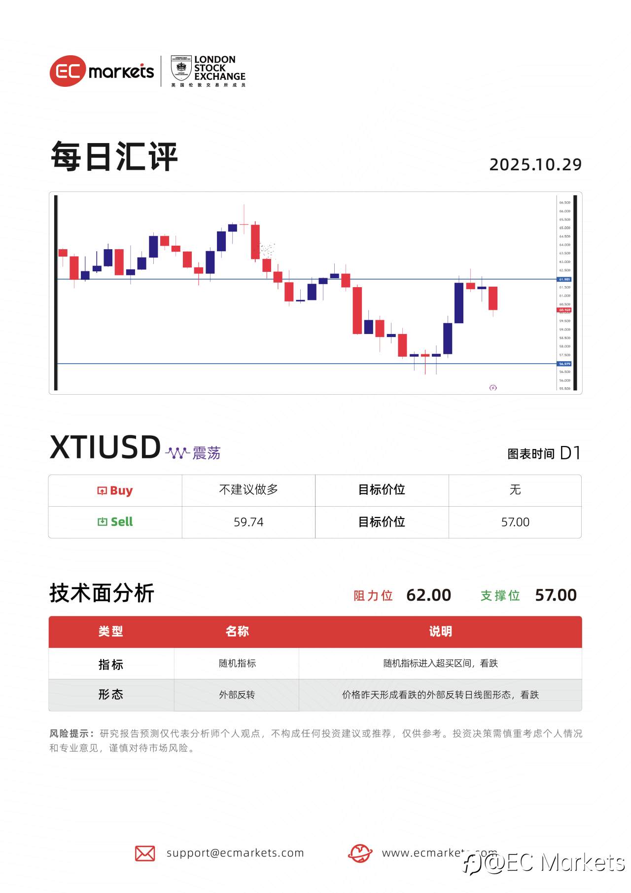 EC Markets 每日汇评 | 10月29日XTIUSD #ECMarkets# #forextrading# #FX# #forexmarket# #trading# 风险提示:本文所述仅代表作者个人观点,不代表 Followme 的官方立场。Followme 不对内容的准确性、完整性或可靠性作出任何保证,对于基于该内容所采取的任何行为,不承担任何责任,除非另有书面明确说明。