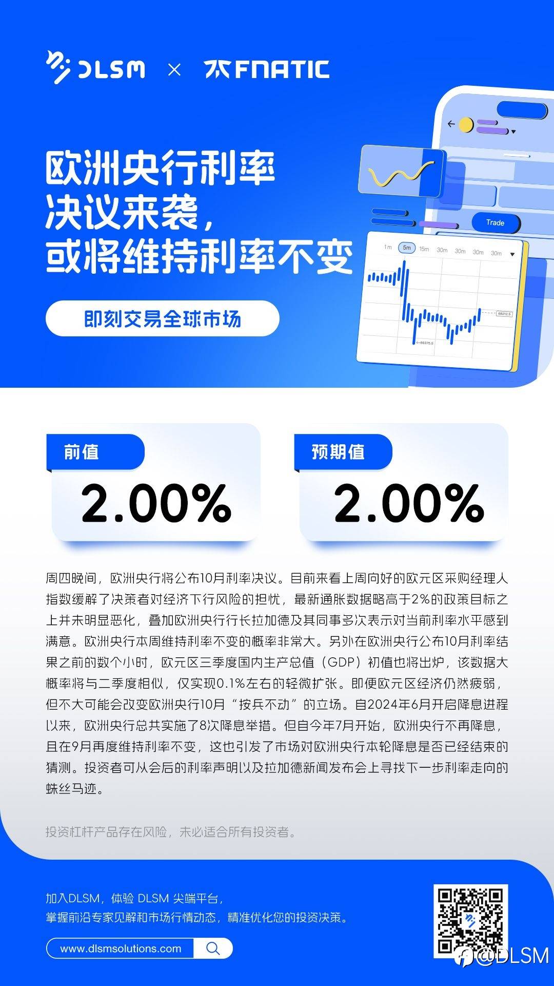 欧洲央行利率决议来袭,或将维持利率不变 风险提示:本文所述仅代表作者个人观点,不代表 Followme 的官方立场。Followme 不对内容的准确性、完整性或可靠性作出任何保证,对于基于该内容所采取的任何行为,不承担任何责任,除非另有书面明确说明。