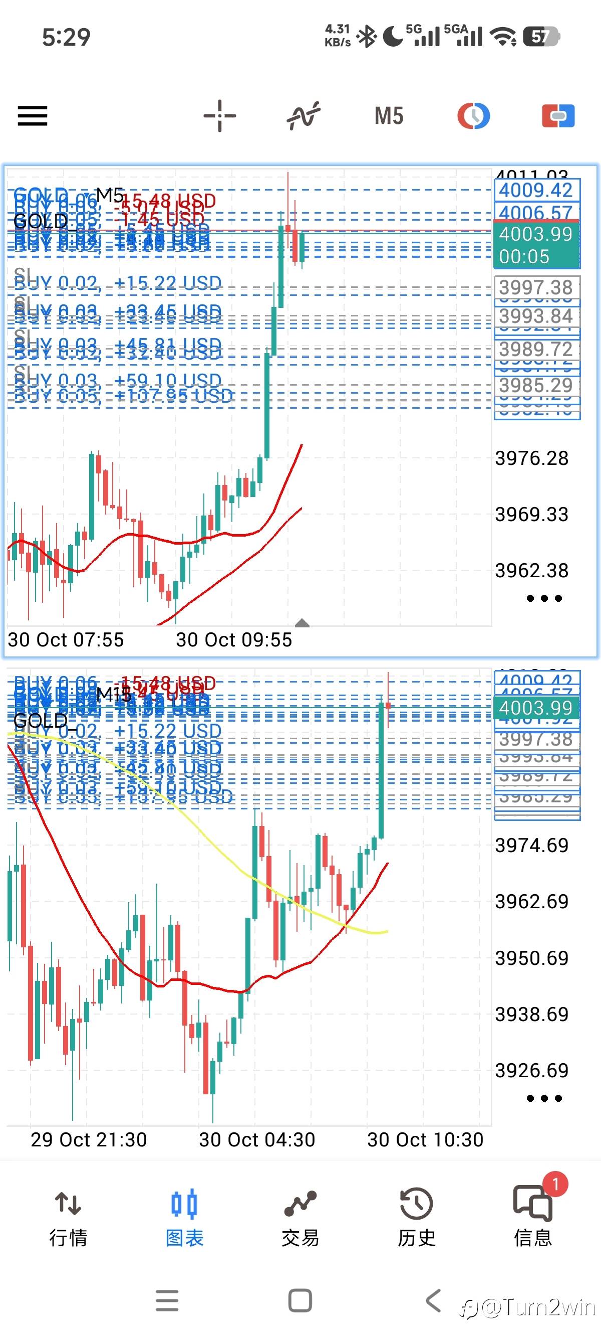 做多了以后,4010左右平仓一半,然后4002左右加个仓。