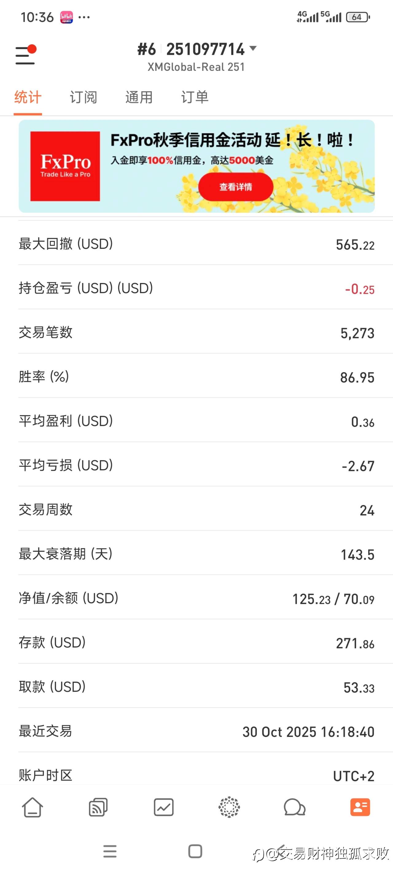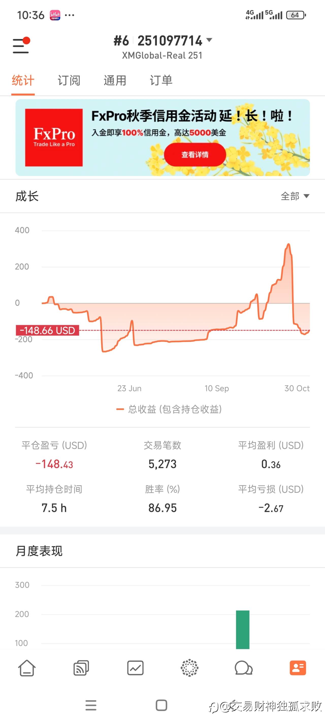 我这251097714户与蓝大人的做单笔数有得一拼!蓝大人51周做了10000笔,我24周做了5200多笔! 风险提示:本文所述仅代表作者个人观点,不代表 Followme 的官方立场。Followme 不对内容的准确性、完整性或可靠性作出任何保证,对于基于该内容所采取的任何行为,不承担任何责任,除非另有书面明确说明。