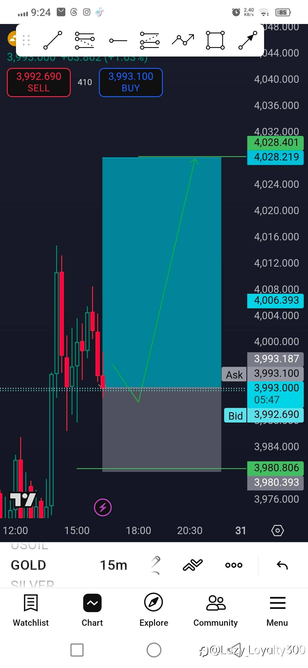 查看翻译 XAUUSD Buy. 3993 target 4028 sl. 3980 风险提示:本文所述仅代表作者个人观点,不代表 Followme 的官方立场。Followme 不对内容的准确性、完整性或可靠性作出任何保证,对于基于该内容所采取的任何行为,不承担任何责任,除非另有书面明确说明。