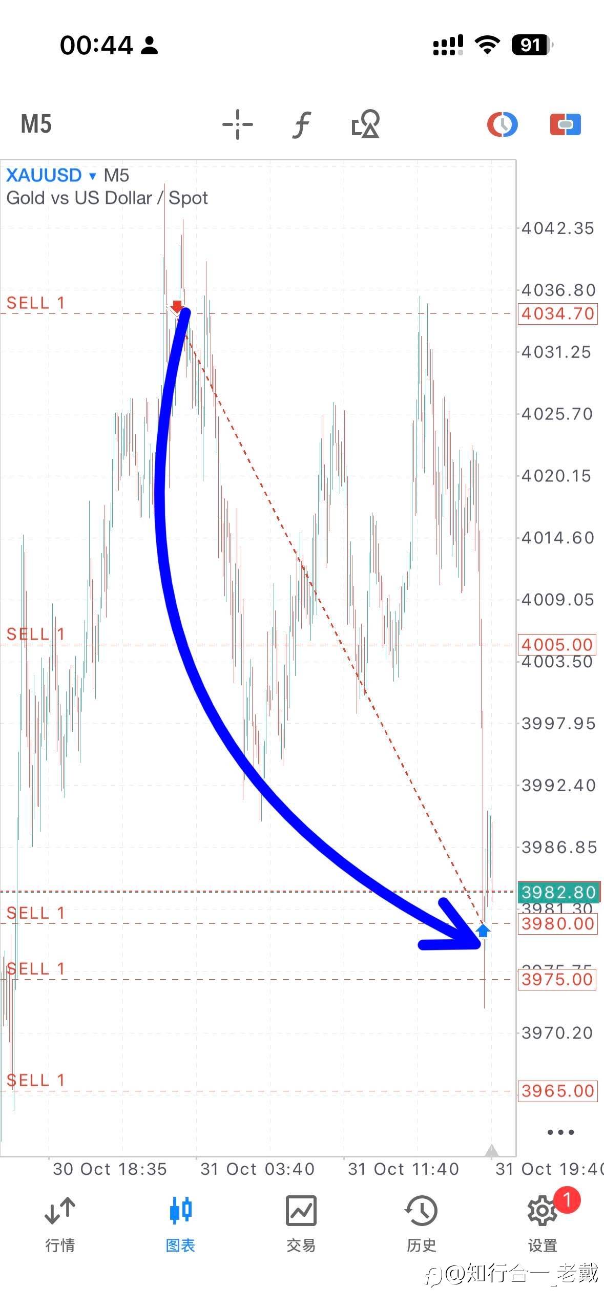 敲黑板:目前美金波动100多美金行情,且伴随着连续性