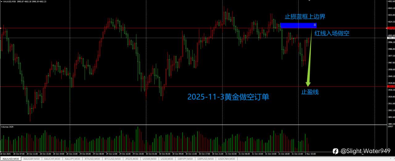 2025-11-3黄金做空交易单 风险提示:本文所述仅代表作者个人观点,不代表 Followme 的官方立场。Followme 不对内容的准确性、完整性或可靠性作出任何保证,对于基于该内容所采取的任何行为,不承担任何责任,除非另有书面明确说明。