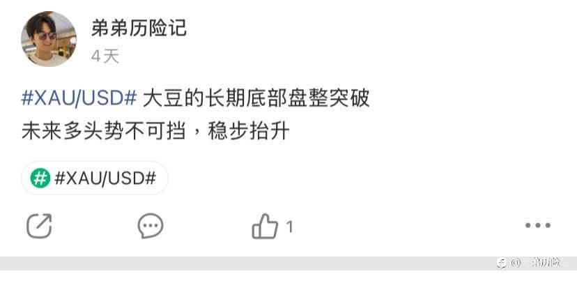 #XAU/USD# 抢黄豆~ 风险提示:本文所述仅代表作者个人观点,不代表 Followme 的官方立场。Followme 不对内容的准确性、完整性或可靠性作出任何保证,对于基于该内容所采取的任何行为,不承担任何责任,除非另有书面明确说明。