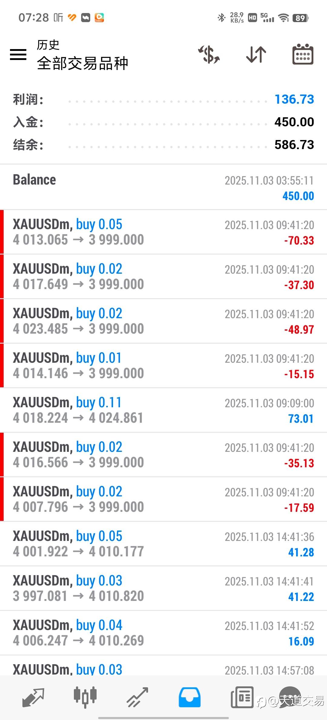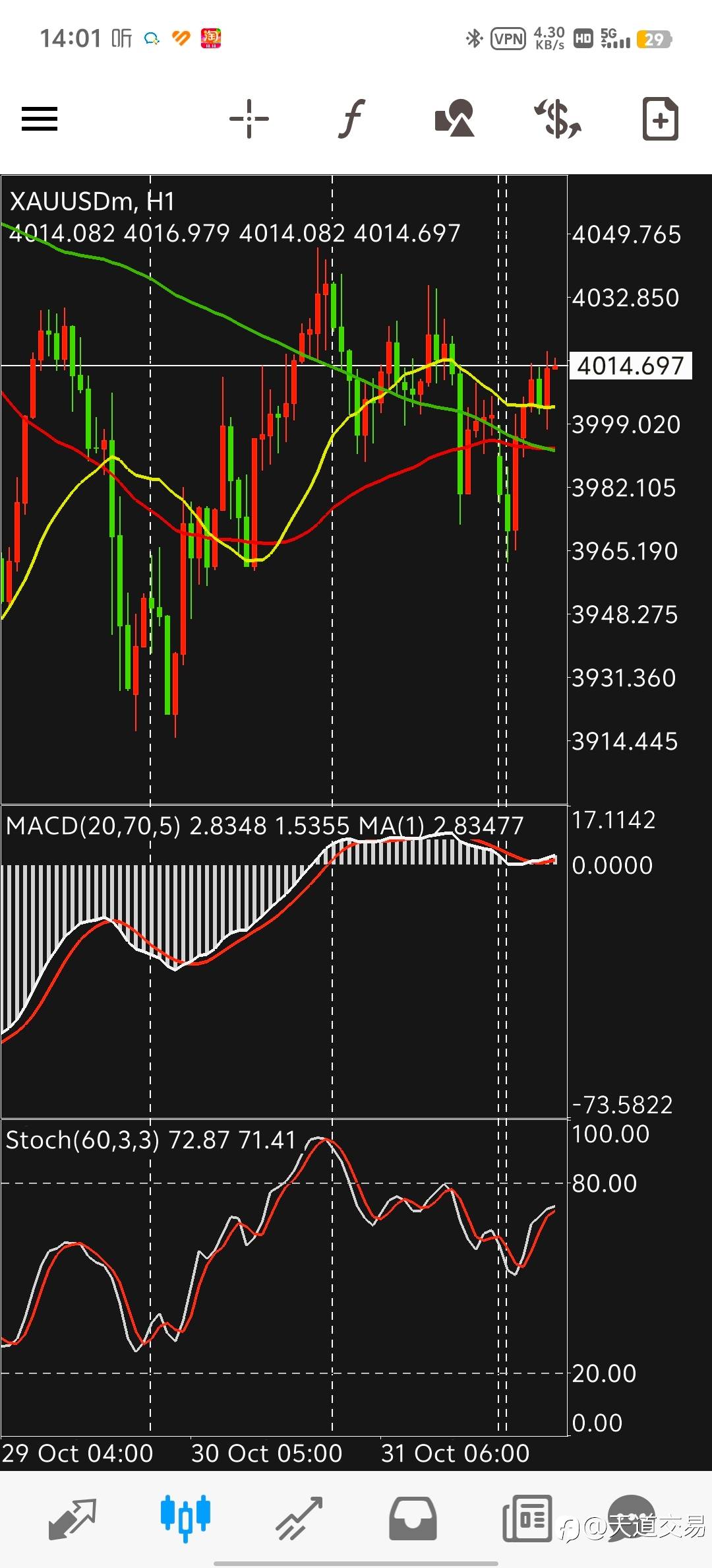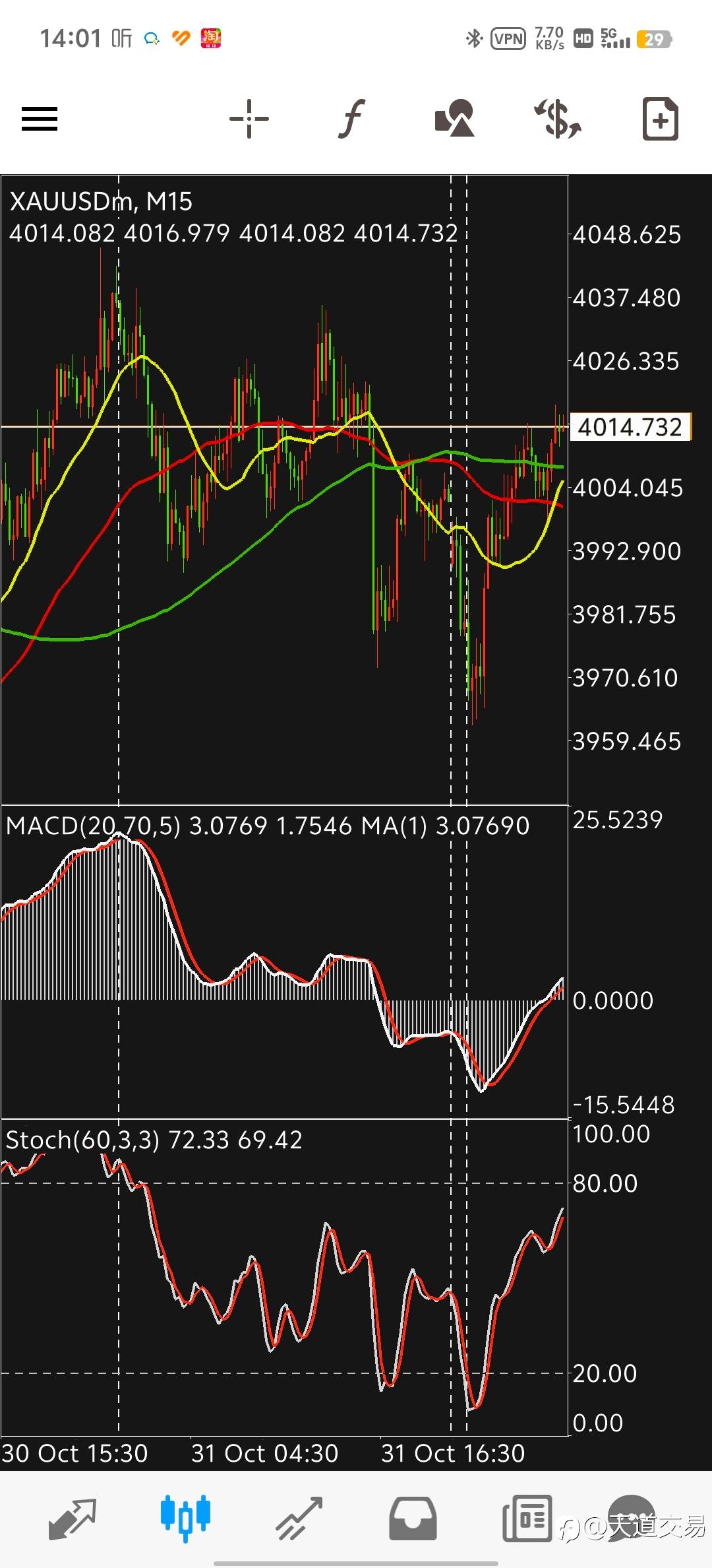 昨天进行入金450美金的第一天操作,最终结果盈利136美金。但是对自己很不满意,1、在没有达到充分开仓条件下,开仓了。只有一小时图符合进场条件,15分钟没有好的进场点,2、在第一次进场,上涨后,多单只平一单,其余没能及时平仓,导致最后止损出场。3、加仓过程很混乱,没有系统明确的要求,4、总体仓位还是太高。 总结:第一天的单子虽然赚钱了,但是很糟糕,做单前的想法没能很好实现。执行力太差。还需要通过每天的交易笔记,慢慢改进。