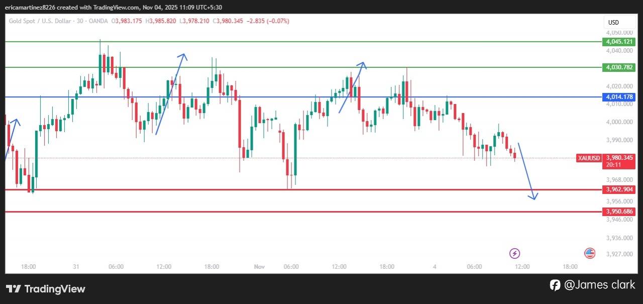 A clear break below 3962 could accelerate downside momentum toward 3950 — sellers remain in control for now.