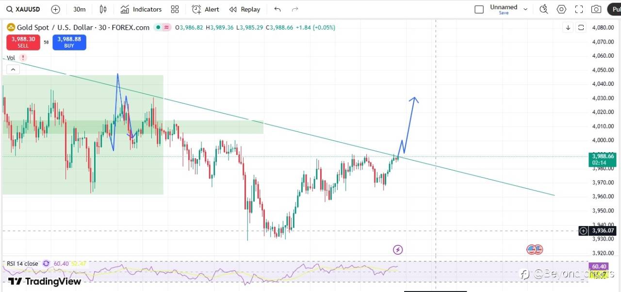 #gold# 30M chart reveals a fascinating setup — after several rejections at the descending resistance, buyers are once again testing the zone near $4005. If the breakout holds, we could witness a strong short-term rally as bullish momentum regains traction.