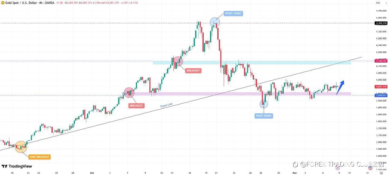 In my view, gold prices may attempt a rebound to the 4080-4150 resistance zone, which coincides with the previous trendline and recent pivot point structure.