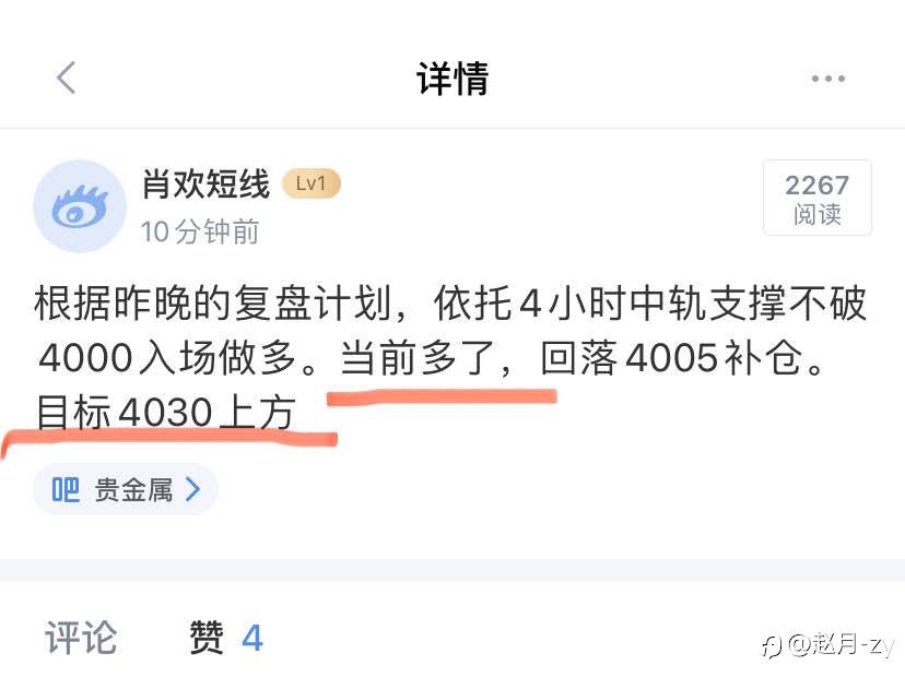 今日第2单:下方继续关注4010-00支撑多机会。上方暂时关注4050-55承压。破位多准备