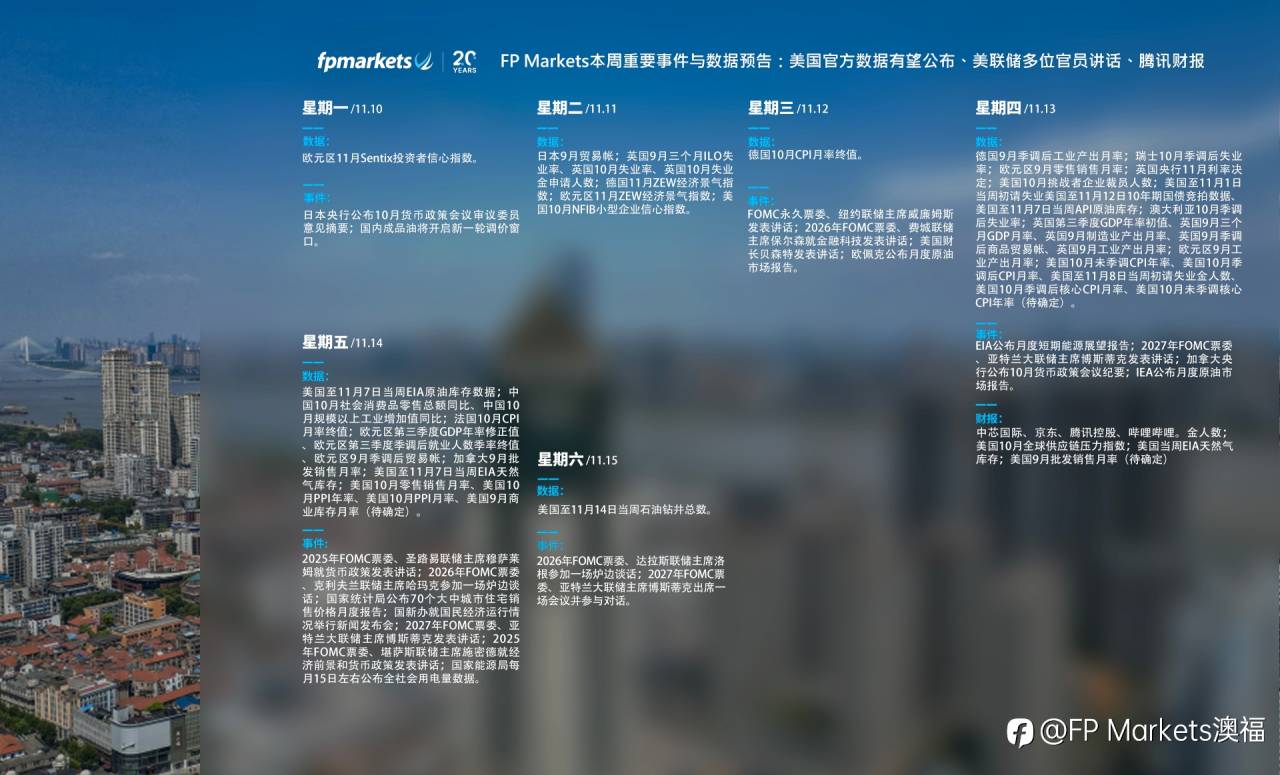 【FP Markets本周重要事件与数据预告:美国官方数据有望公布、美联储多位官员讲话、腾讯财报】