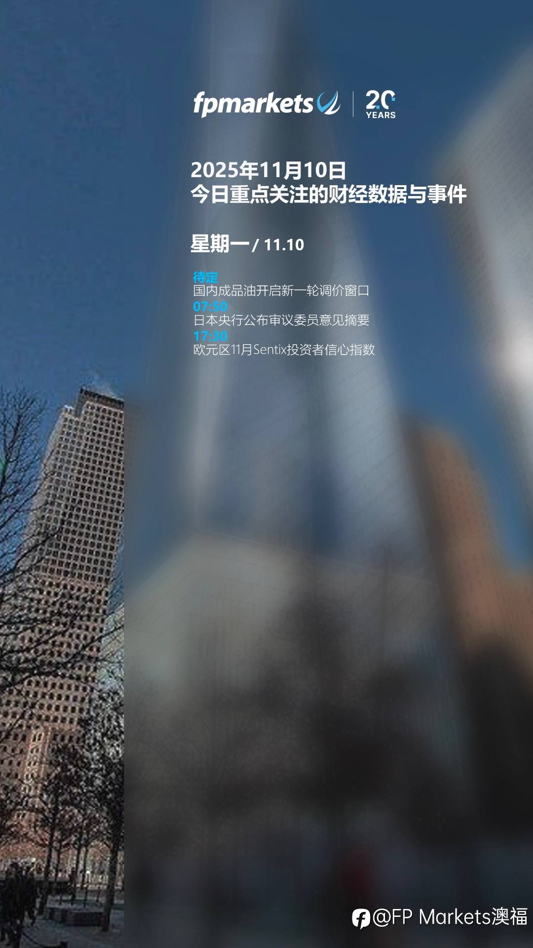 【FP Markets今日重点关注的财经数据与事件:2025年11月10日 周一】