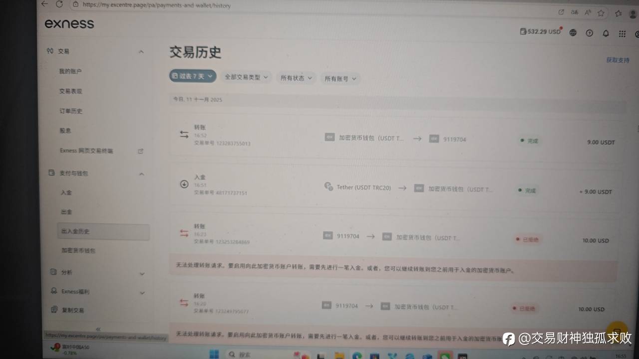 EX出金,先要有一笔入金,刚才我通过币A入了一笔10美元进来,到帐9美元,也到9119704帐户,资金从523变动到532 风险提示:本文所述仅代表作者个人观点,不代表 Followme 的官方立场。Followme 不对内容的准确性、完整性或可靠性作出任何保证,对于基于该内容所采取的任何行为,不承担任何责任,除非另有书面明确说明。