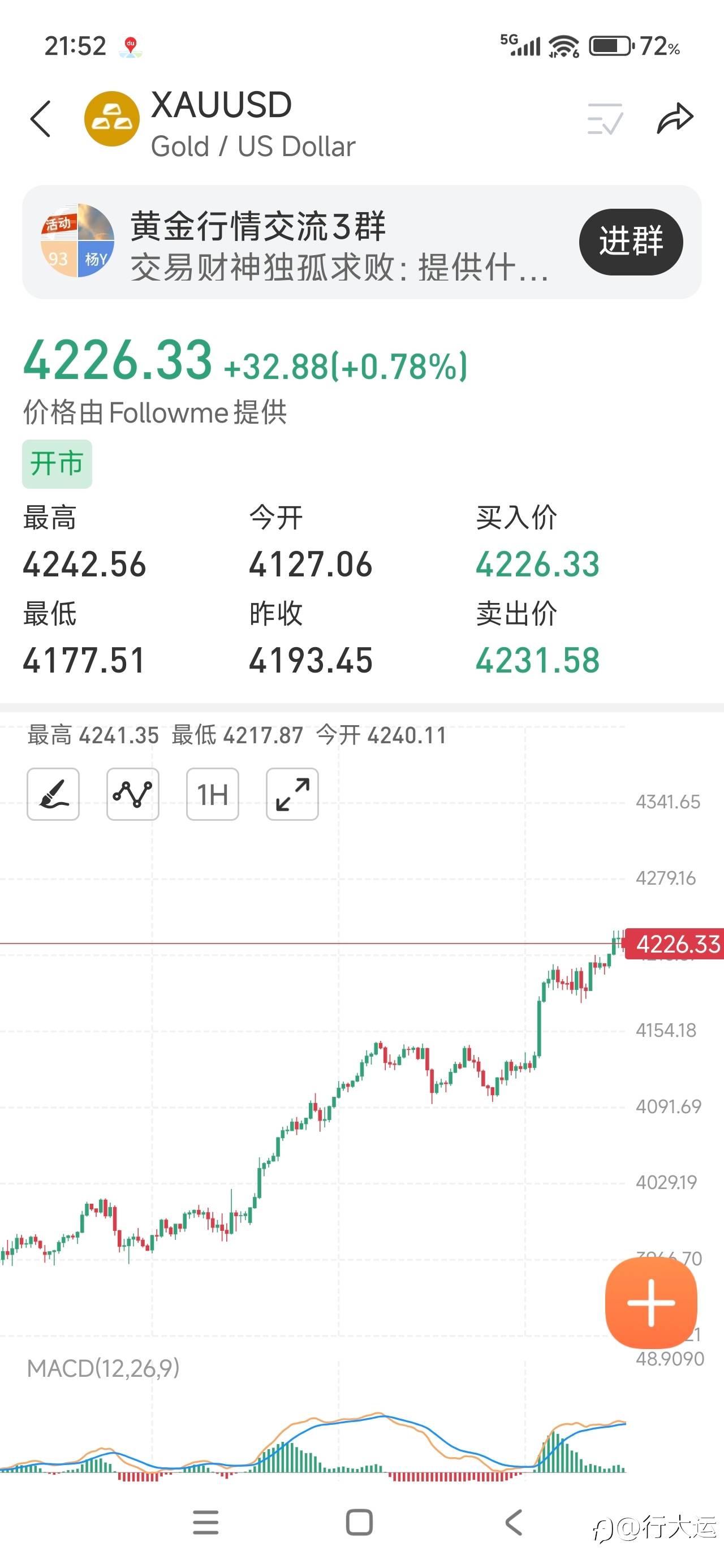 多头行情,还能走多远#XAU/USD##每日交易打卡# 风险提示:本文所述仅代表作者个人观点,不代表 Followme 的官方立场。Followme 不对内容的准确性、完整性或可靠性作出任何保证,对于基于该内容所采取的任何行为,不承担任何责任,除非另有书面明确说明。