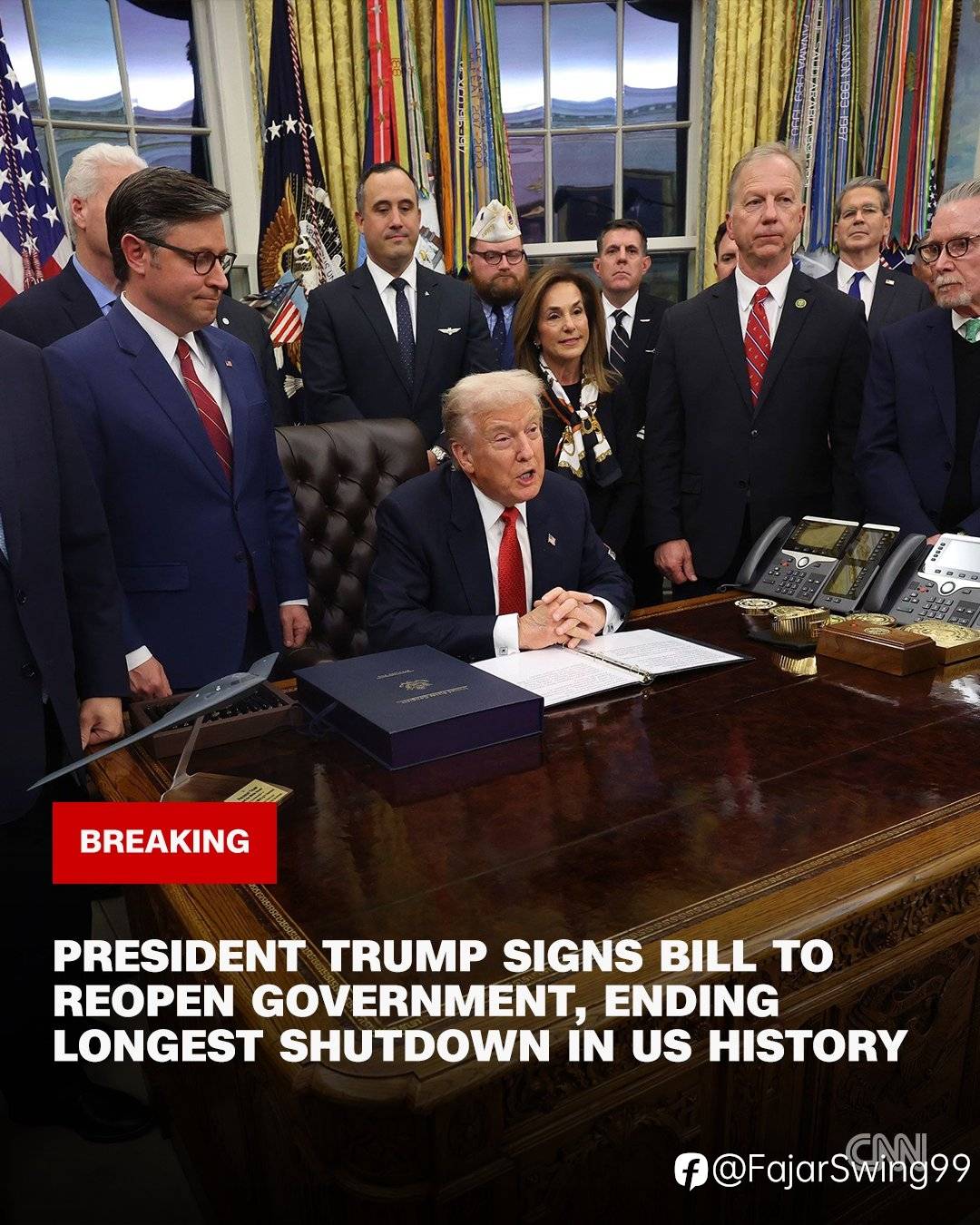 Presiden Trump resmi menandatangani bill untuk membuka kembali pemerintahan AS.